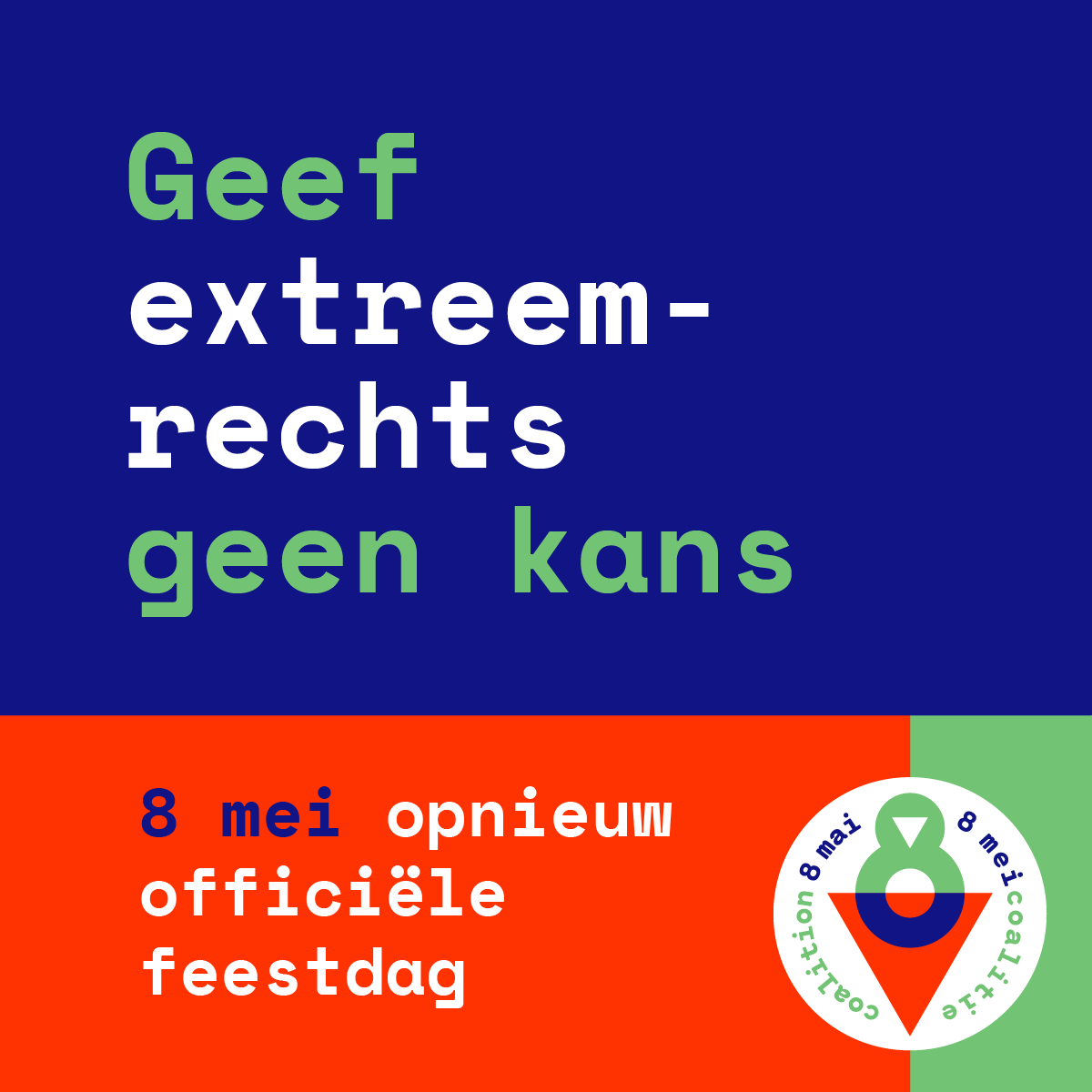 Het is tijd. 8 mei, de dag van de bevrijding, hoort opnieuw een feestdag te zijn. Om te herdenken, te waarschuwen, te verdedigen. Als een moment van sociale cohesie. Als een samen uitgesproken wil voor vrede en solidariteit. Als een oproep om te handelen. Zodat jong en oud inzien waar haat toe kan leiden en wat voor een lelijk beest fascisme is. Want enkel wanneer je het verleden kent en we waakzaam blijven over onze grondwettelijke vrijheden, pas dan kunnen we, nu en in de toekomst, de juiste keuzes maken. Zodat deze vreselijke geschiedenis zich nooit, maar dan ook nooit meer herhaalt! Want wie nu nog zwijgt moet alles vrezen..."