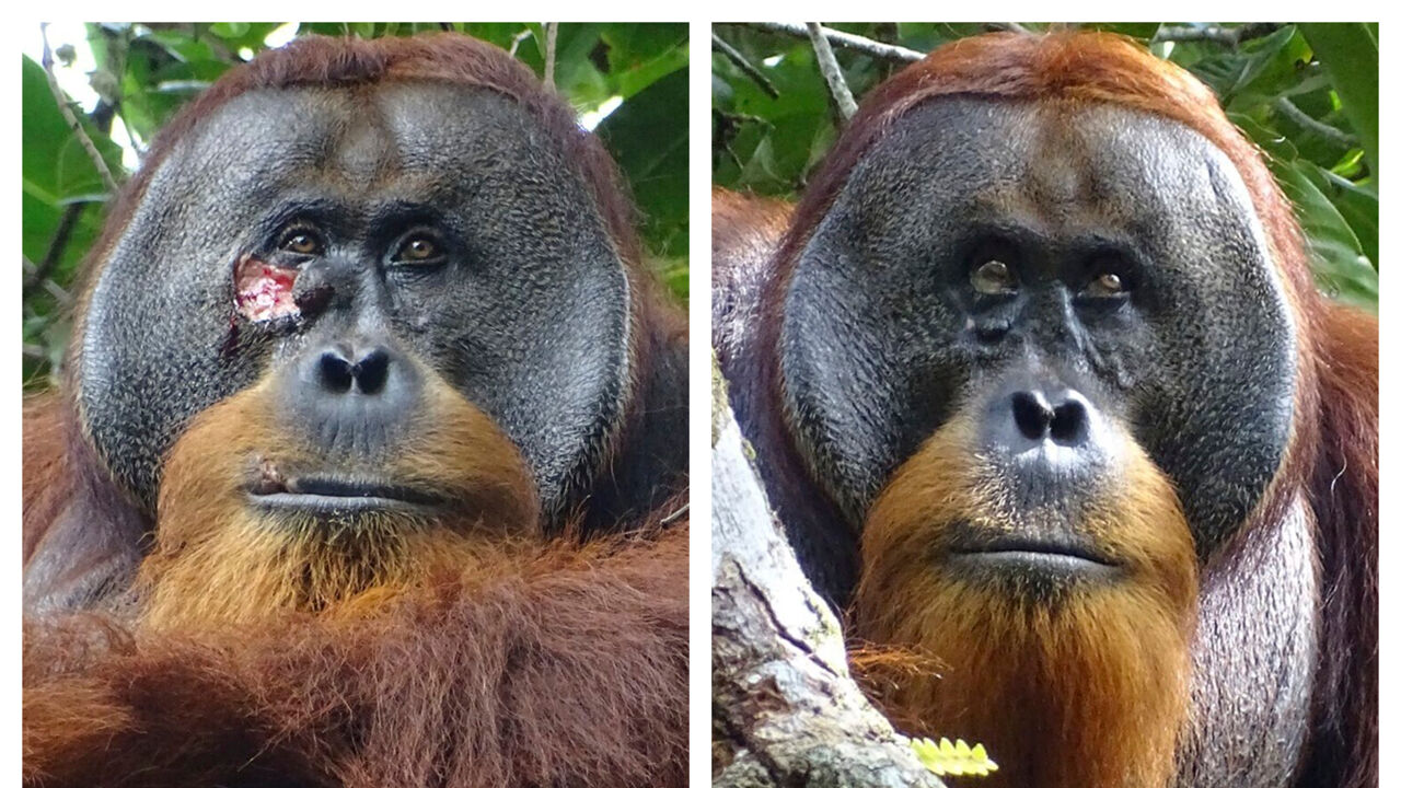 "In een beschermd natuurgebied op het eiland Sumatra, een deel van Indonesië, hebben wetenschappers voor het eerst een wild dier zijn eigen vleeswond zien behandelen met een geneeskrachtige plant. De orang-oetan Karus gebruikte het sap en herkauwde bladeren van een liaan die de Aziatische bevolking gebruikt om diabetes en malaria te behandelen. Na een maand was de wond helemaal hersteld...