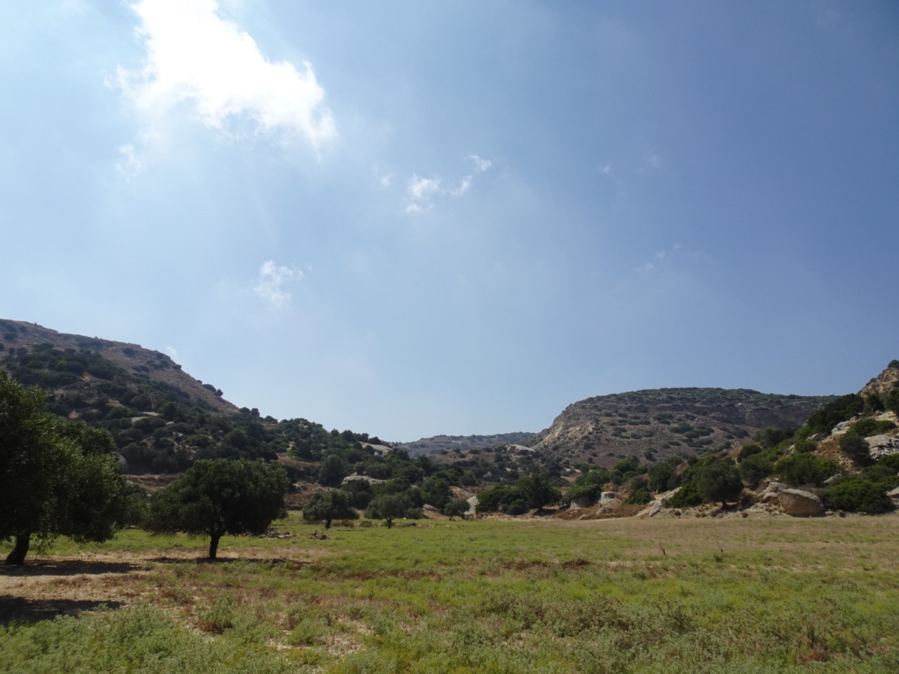 bronstijd en nog wat ruïnes liggen... maar er stond helemaal niets aangegeven. Achteraf lazen we ook dat we daar steeds best een stukje voor gewandeld hadden moeten hebben... wat niet gegaan had met de hitte. De route zelf was op zich ook mooi: veel groen, maar ook veel boomgaarden, velden en weien. Op heel de reis hebben we overigens maar één koe gezien. We zagen wel enkele kuddes schapen en geiten, maar eigenlijk ook niet zo heel veel...