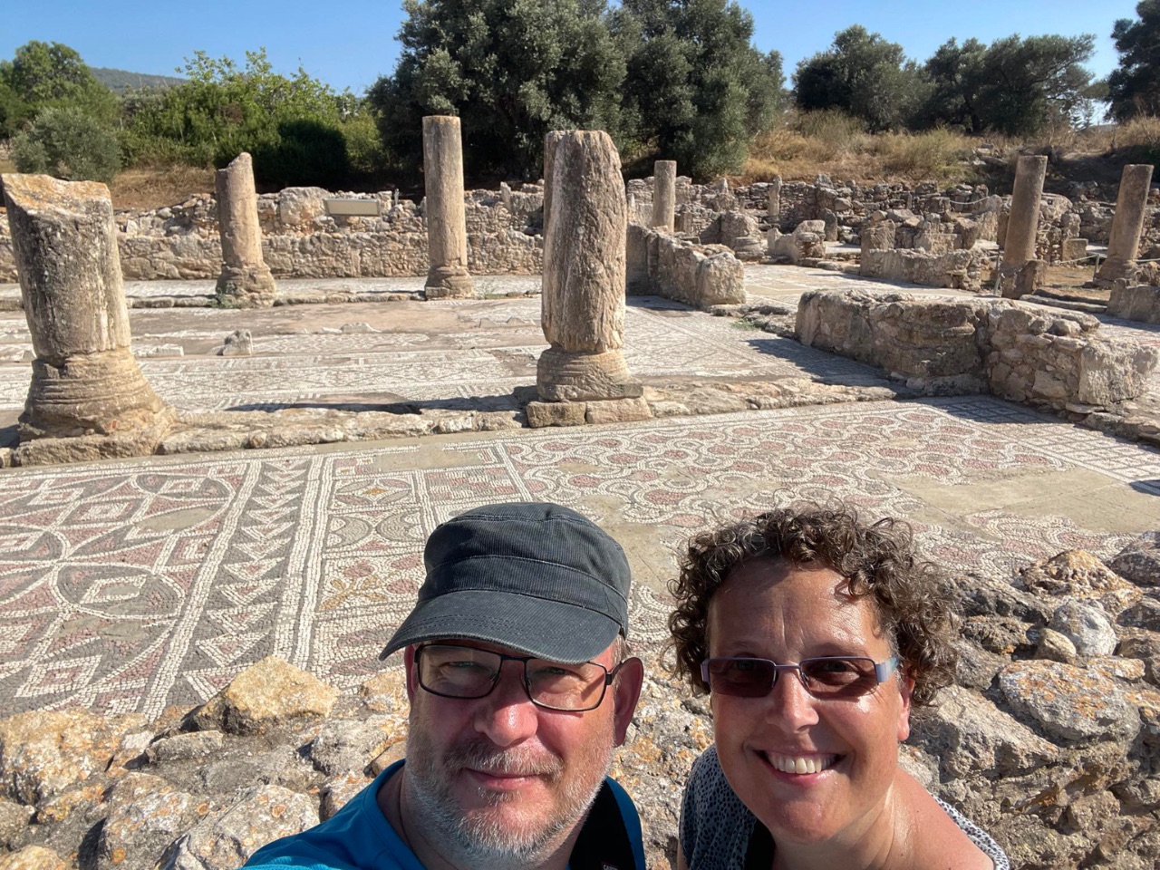 De mozaïeken waren echt prachtig! We zagen allerlei diverse geometrische figuren, maar ook teksten, granaatappels, plantenbladeren en zelfs sandalen! Mooi!