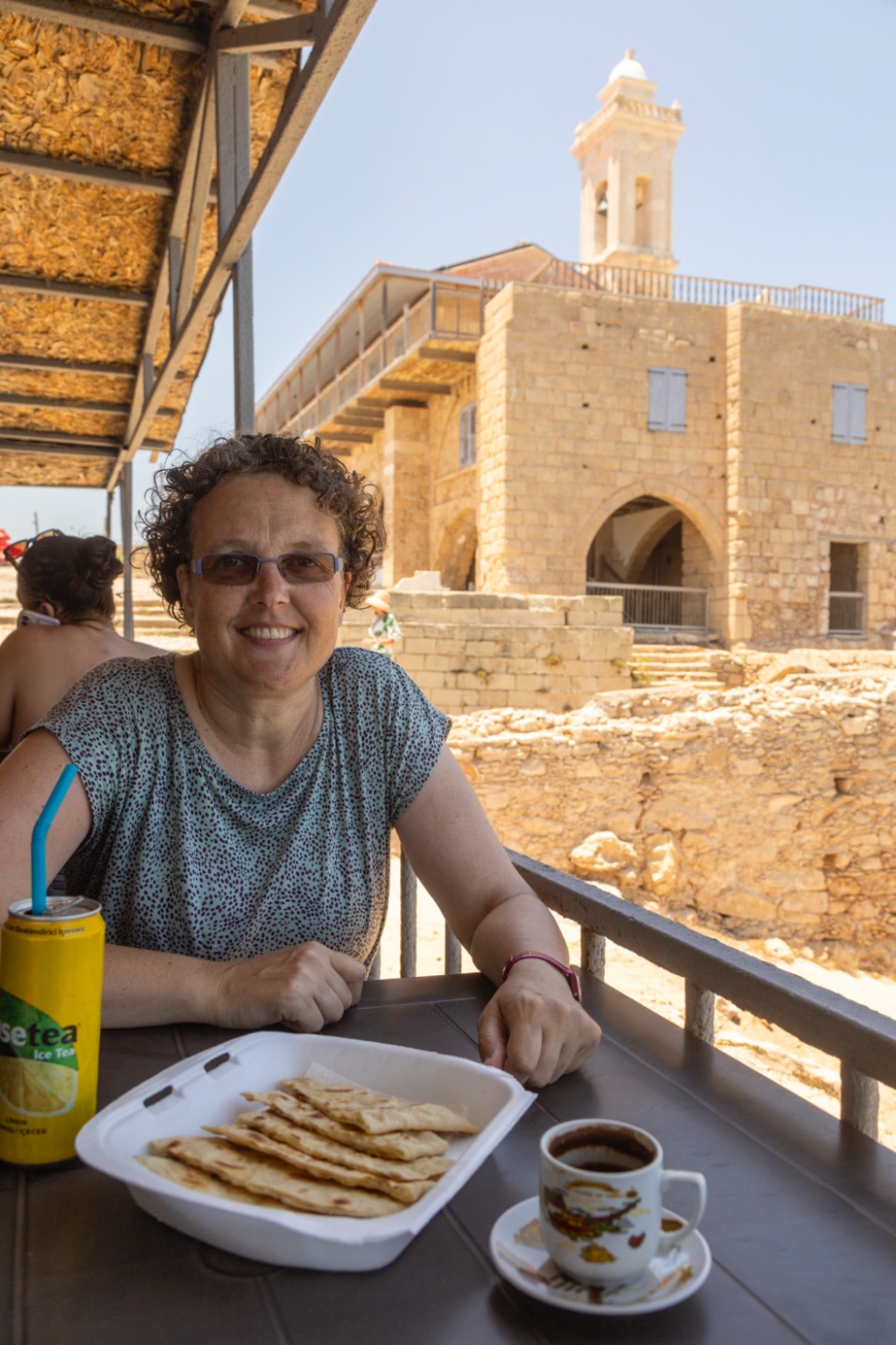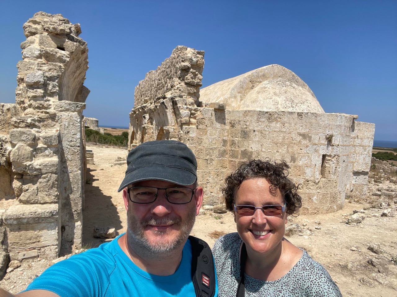 Enfin, onze volgende bestemming was het kuststadje uit de tweede eeuw voor Christus, Aphendrika. Dit was toen èèn van de zes belangrijkste steden van Cyprus. Van de daadwerkelijke haven van toen is niets meer terug te vinden omdat de locatie van waar in die tijd de haven lag, nu land en duinen liggen en de zee niet meer tot die locatie komt. Ook van de rest van het kuststadje ligt (nog maar?) weinig bloot. Wel liggen er ruïnes van drie kerken uit de zesde en tiende eeuw na Chr.