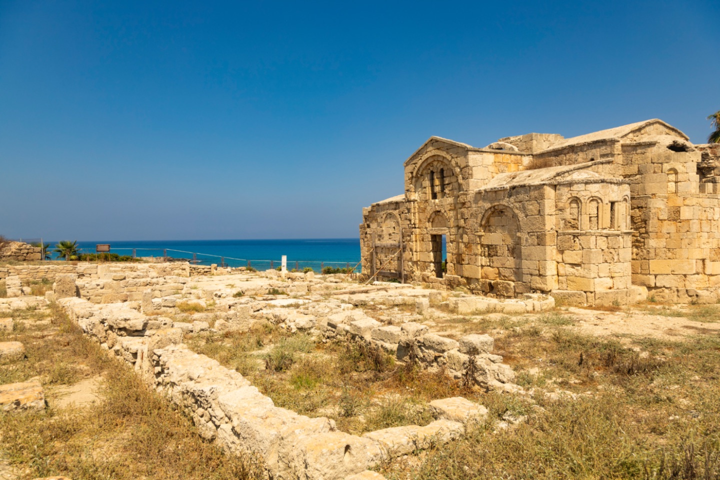 Romeinse periode werd in de tiende eeuw een kerk ter ere van die heilige Philo gebouwd. We bezochten de ruïnes van deze kerk. Er zijn ook nog resten van deze oudere gebouwen te zien, waaronder bijvoorbeeld een vloer van een basiliek. Van aan deze ruïnes keken we ook op een baaitje. Het zeewater was hier erg mooi blauw van kleur.