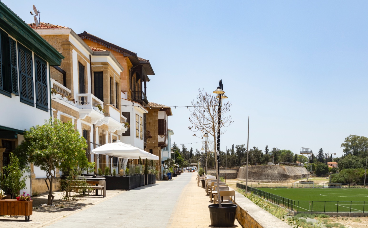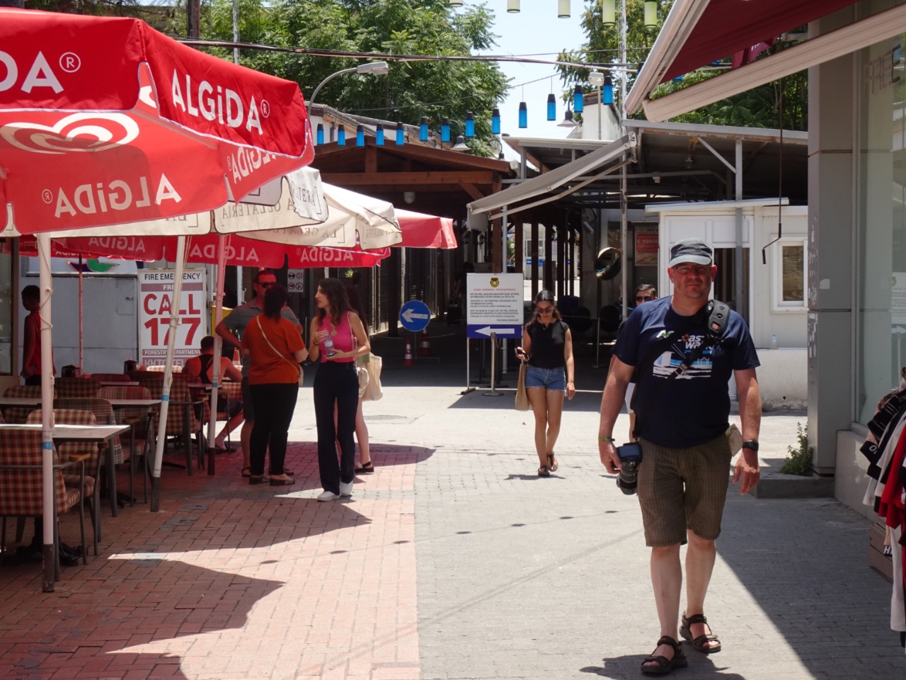 Enfin Lefkoşa, we wandelden een route aan de hand van een kaartje van de Noord-Cypriotische toeristische dienst. Al voor de middag was het eigenlijk te warm om te wandelen, maar we wilden wél iets doen! We pasten ons tempo dat we anders hebben serieus naar beneden aan, gingen regelmatig eens zitten om van onze watervoorraad te drinken en we gingen een paar keer op een terrasje zitten… vriendelijke mensen, die Noord-Cyprioten. We hadden de dag voordien al heel snel door dat er voornamelijk met bankkaart of in Turkse lira betaald werd. Euro’s worden ook aangenomen, maar met een ferme wisselkoers. We hadden daarom die ochtend al Turkse lira uit de betaalautomaat gehaald, altijd fijn om bij de hand te hebben om kleine bedragen cash te kunnen betalen.