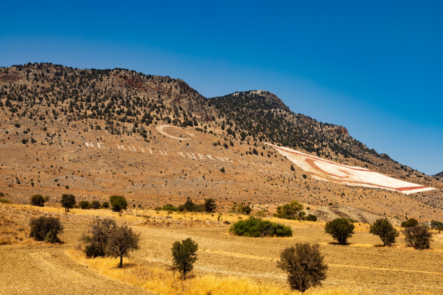 De afbeelding bestaat uit geverfde stenen en is 425 meter breed en 250 meter hoog, waardoor de vlag ook zichtbaar is vanuit de Griekssprekende Republiek Cyprus. Het gedenkteken is opgericht door Turks-Cypriotische vluchtelingen uit Tochni (Zuid-Cyprus), een stadje waar in 1974 alle mannen door de Griekse EOKA werden vermoord. Neen, het hele verhaal over Turkije dat een deel van Cyprus bezet is dus niet zwart-wit, ook de Grieken hebben het hier echt wel bont gemaakt!