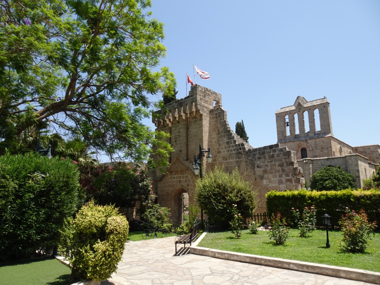 De abdij staat op een rots met aan een kant een steile wand van 30 meter hoog. Er zijn onder andere, mooie gotische spitsbogen, een indrukwekkende refter, kloosteringang met fresco’s, werkkamers met schilderingen en beeldhouwwerken en een schatkamer te zien. De kerk van de Bellapais abdij is gebouwd in de dertiende eeuw en grenst aan de binnenplaats... mooie plek!