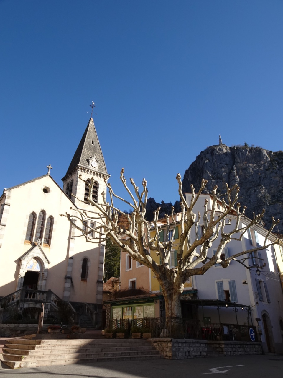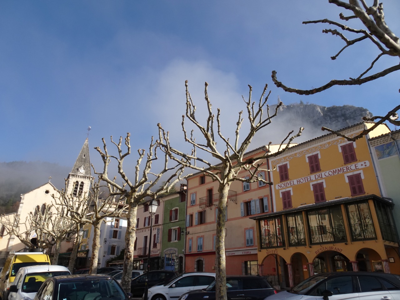Castellane. Toen we er parkeerden hing er dikke mist tegen de bergen... gaandeweg ons bezoek trok die helemaal weg en konden we ook nog fijn in de zon lunchen.