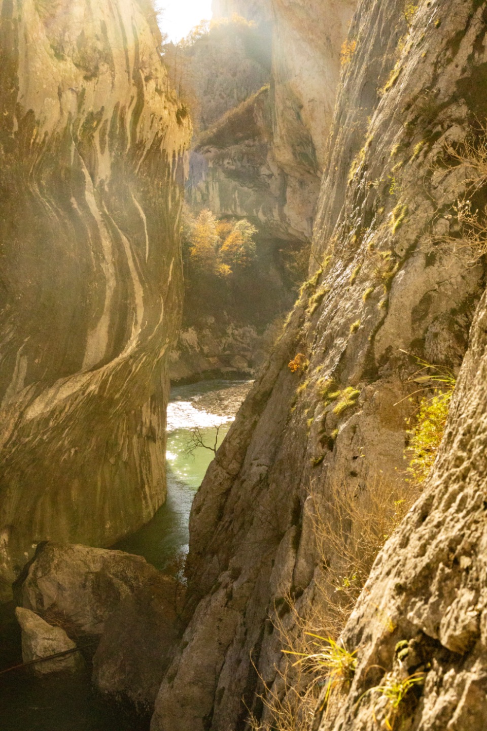 raften ed. gedaan. De bergen zijn hier, vanaf de waterkant, aan beide kanten 400 meter hoog.