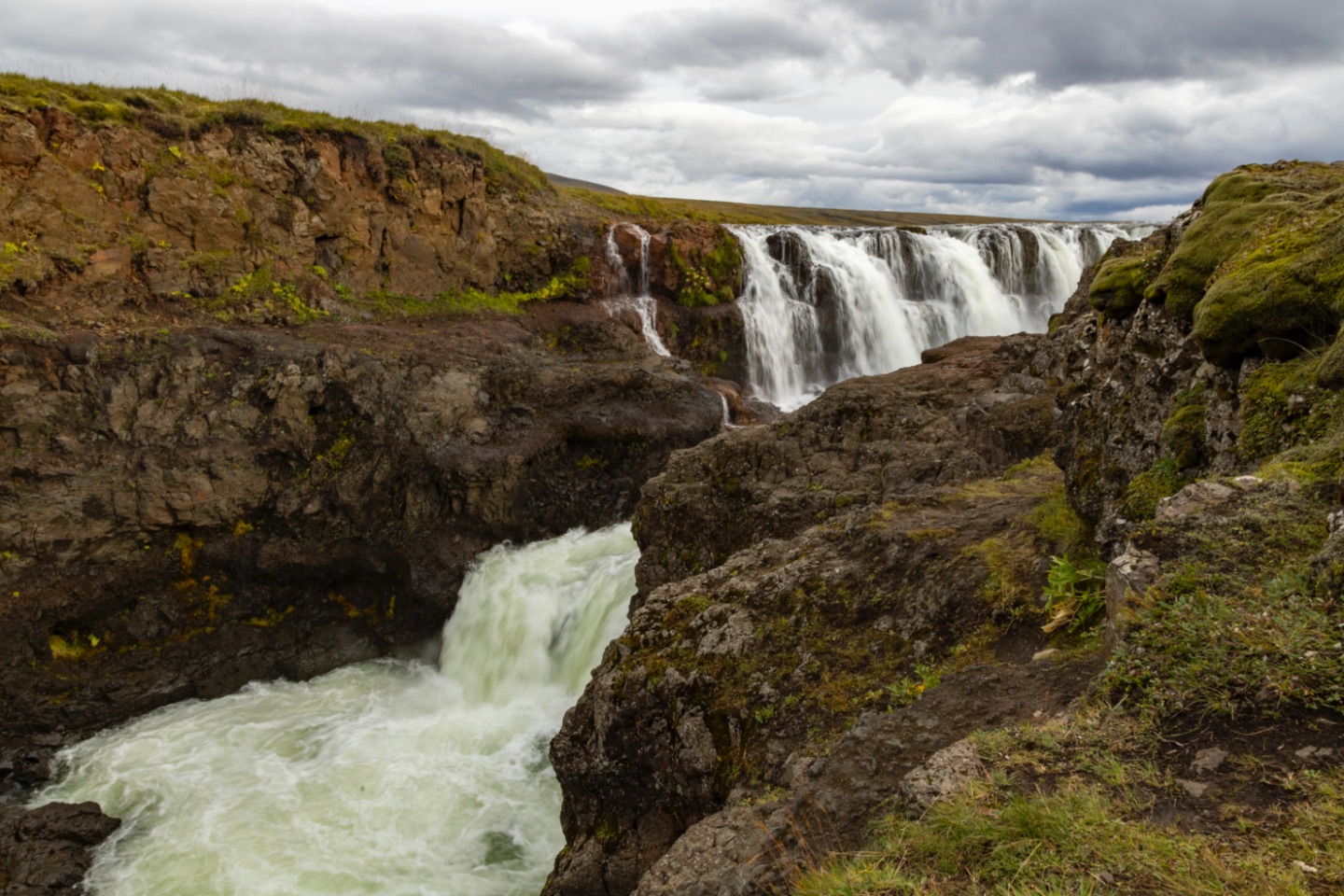 Na ons rondje Heggstaðanes was het nog steeds te vroeg, vonden we, om al naar ons hostel te rijden. We besloten daarom ook kloof Kolugljúfur met waterval Kolufossar te bezoeken. Die stonden gepland voor dag 15, als we weer van noord naar zuid gaan rijden. Toen we in juni 2022 een tweede keer een rondje IJsland maakten, bezochten we deze plek ook al eens. Het is best een mooie en fotogenieke locatie. De waterval is zelfs best groot, qua breedte en hoogte. Ine wist nog vaag iets van een trol in een mythe over deze plek... ze heeft haar hoofd zelfs gezien en gefotografeerd! ...alleen was het waarschijnlijk toch haar fantasie, want het verhaal is iets anders: