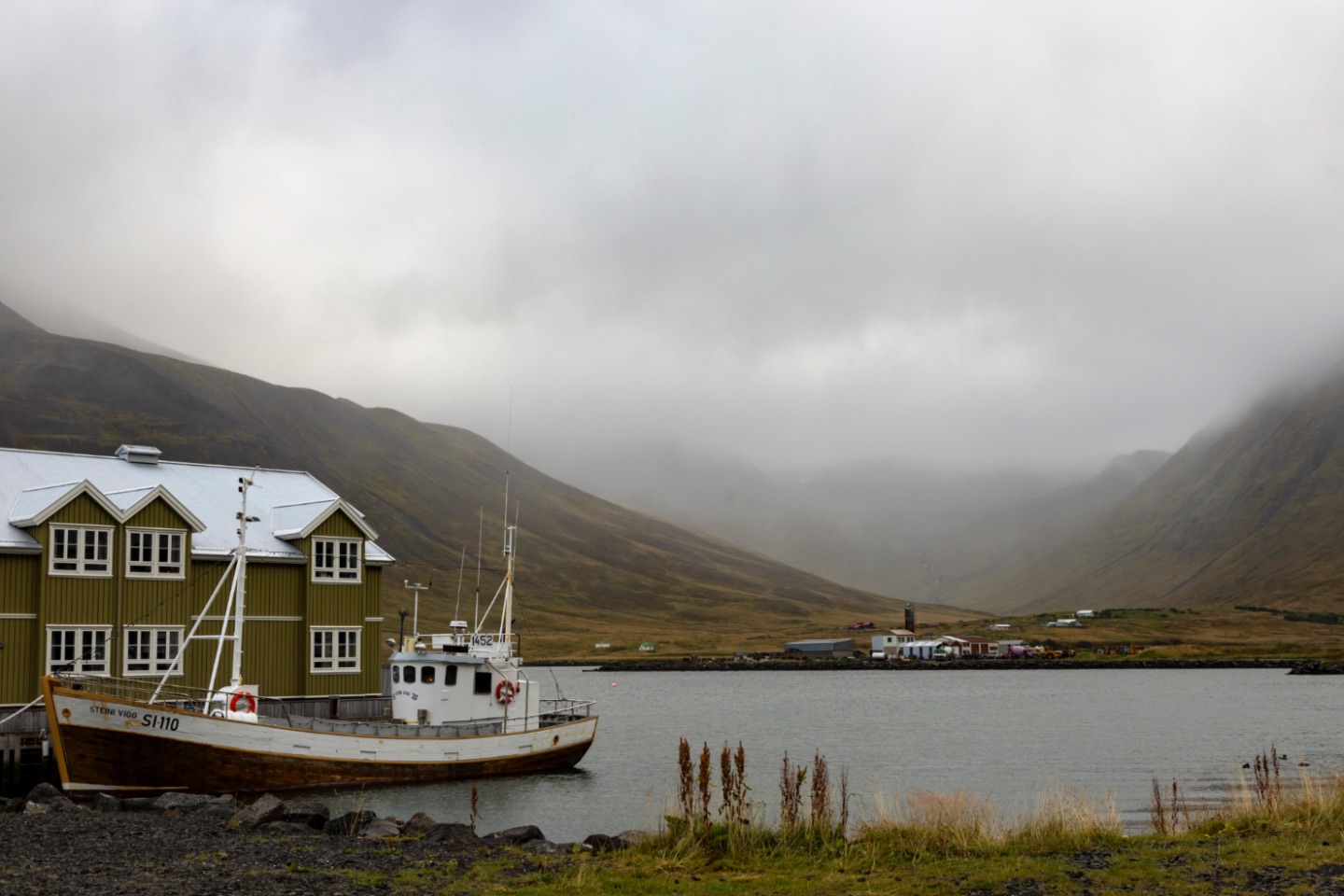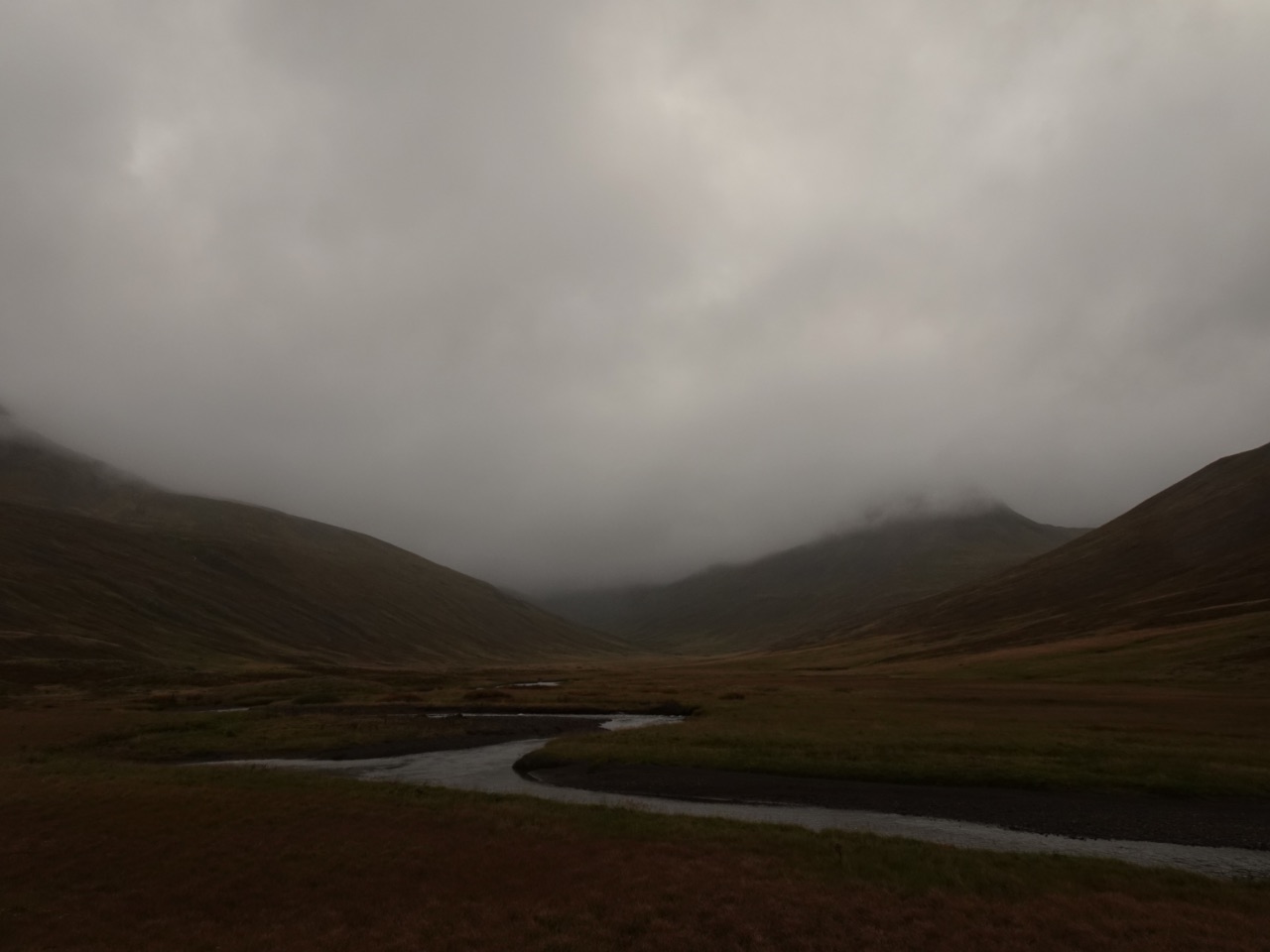 In dat dal, Héðinsfjarðardalur, werd de "Heðinsfjörður hike/wandeltocht" uitgezet. Deze wilden we, bij goed weer, gaan wandelen... maar aangezien het enkel nog maar slechter weer was tussen die twee bergen, startten we niet eens: het hing er vol mist en het regende zo hard dat wandelen niet aangenaam zou zijn.