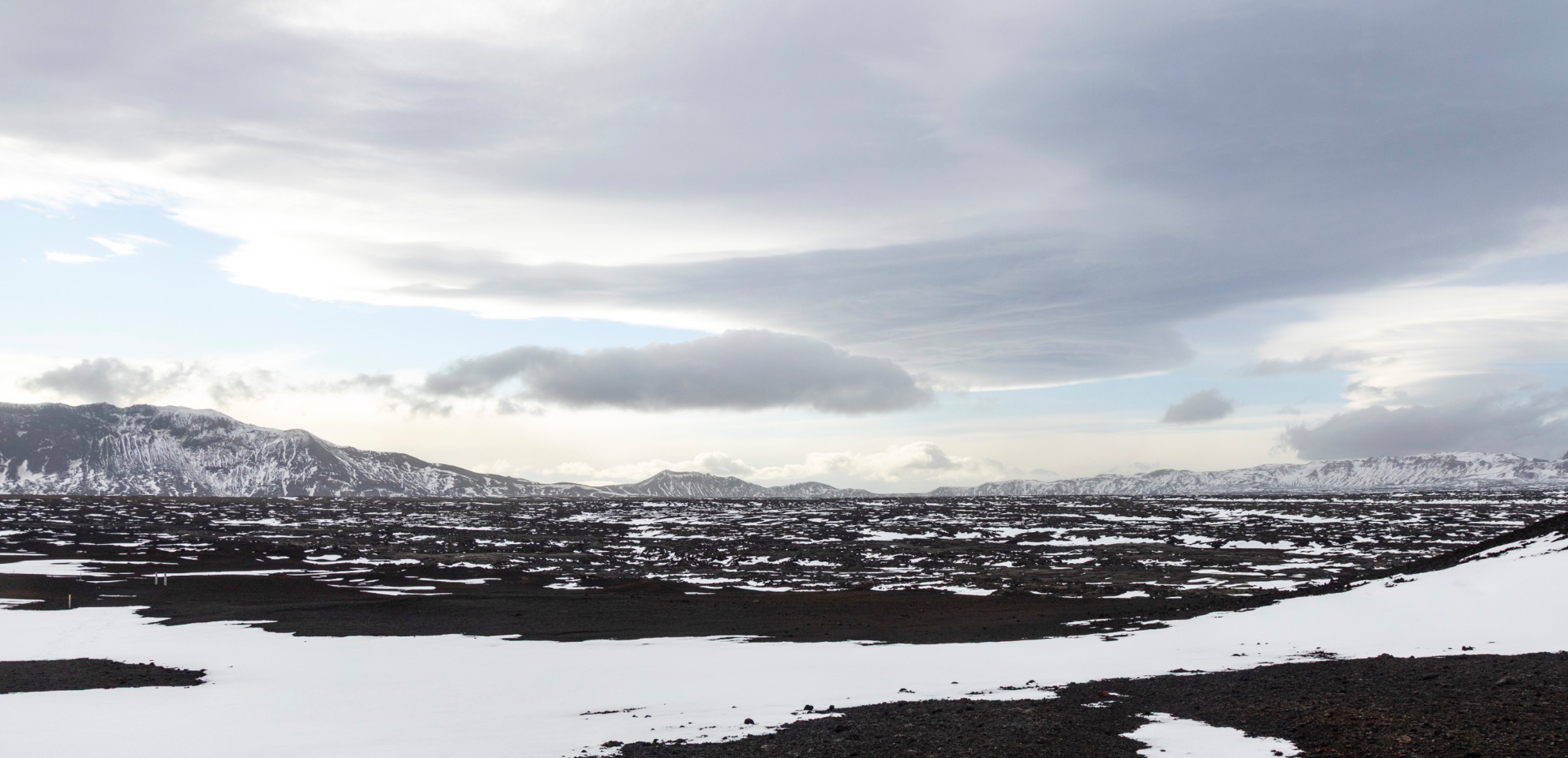 Nadat we deze vruchtbare plek met veel water en planten verlieten, kwamen in de immense lavawoestenij Ódádahraun terecht. Dit lavaveld is de grootste aaneengesloten lavavlakte van IJsland. Het lavaveld is afkomstig van een zware uitbarsting van de Trölladyngja. Op sommige plaatsen was het lavaveld nog hoog met allerlei kloven, maar op andere plaatsen was het zo goed als plat. Je zag de wind er over waaien en dansen doordat er nog erg veel vulkaanassen liggen. Deze assen maken dat er niks kan groeien en dat het er he-le-maal kaal is... bizar! ...en je zal daar maar iets aan de hand krijgen: felle wind, geen beschutting, geen drupje water... máár omdat de IJslanders dat zo belangrijk vinden: wel een gsmsignaal om alarm te kunnen slaan!