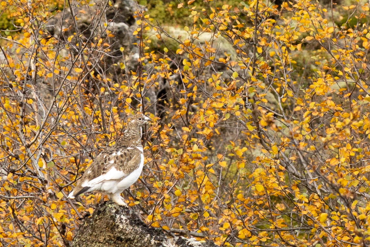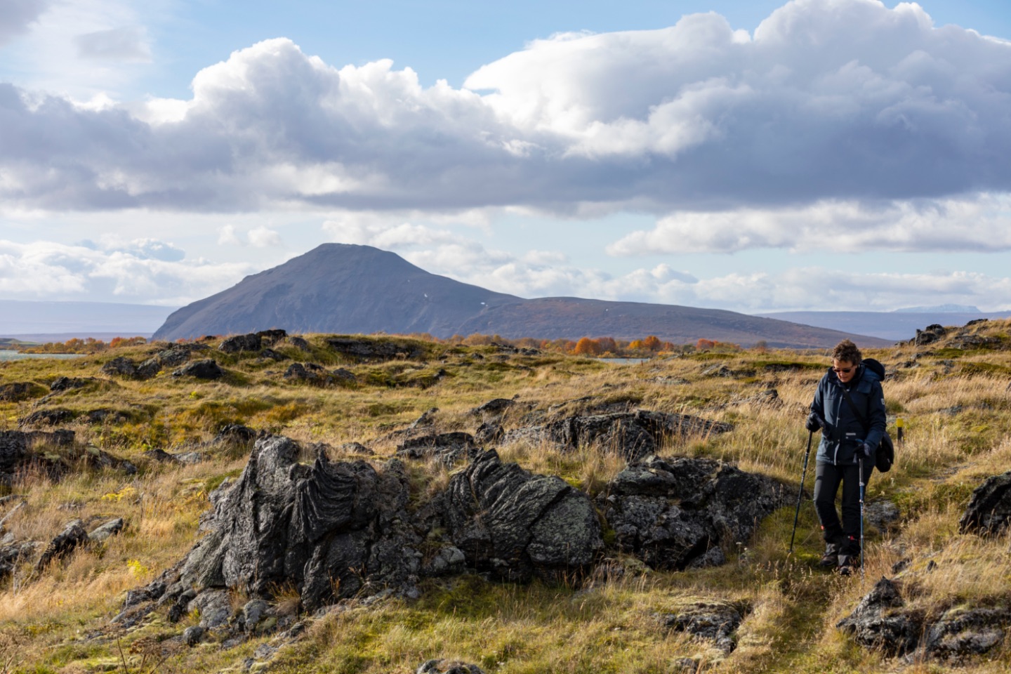 Zowel in 2007 als in 2022 kwamen we hier al wat wandelen. Wat we ons nog herinneren van in 2007 is dat we toen niet echt een route binnen Dimmuborgir gevolgd hebben. In 2022 wandelden we via een route doorheen de lavaformaties. Nu kozen we een route waar we, in het eerste gedeelte, nog helemaal niet geweest waren. Het was nog heel rustig dus kregen we een sneeuwhoen te zien. Het diertje was nog maar deels wit, maar zijn witte laarsjes vielen wel serieus op. Door ditmaal ook helemaal in het noorden van het reservaat te wandelen, kwamen we in een gedeelte waar geen grote lavaformaties meer waren, maar waar het ineens een soort woestijn was geworden. Mooi, hoor!