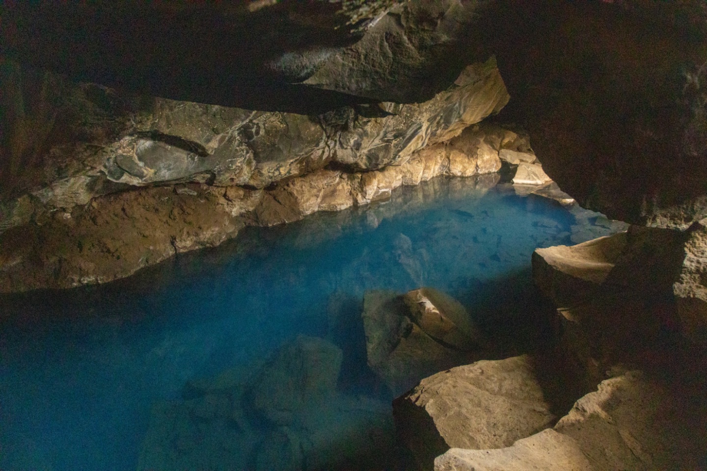 Na ons bezoek bij Kaffi Sel reden we nog eens naar de warmwatergrot Grjótagjá. Daar was het gelukkig ietsje rustiger als twee dagen eerder. We konden de blauwe gloed van het warme water goed zien. Mooi!