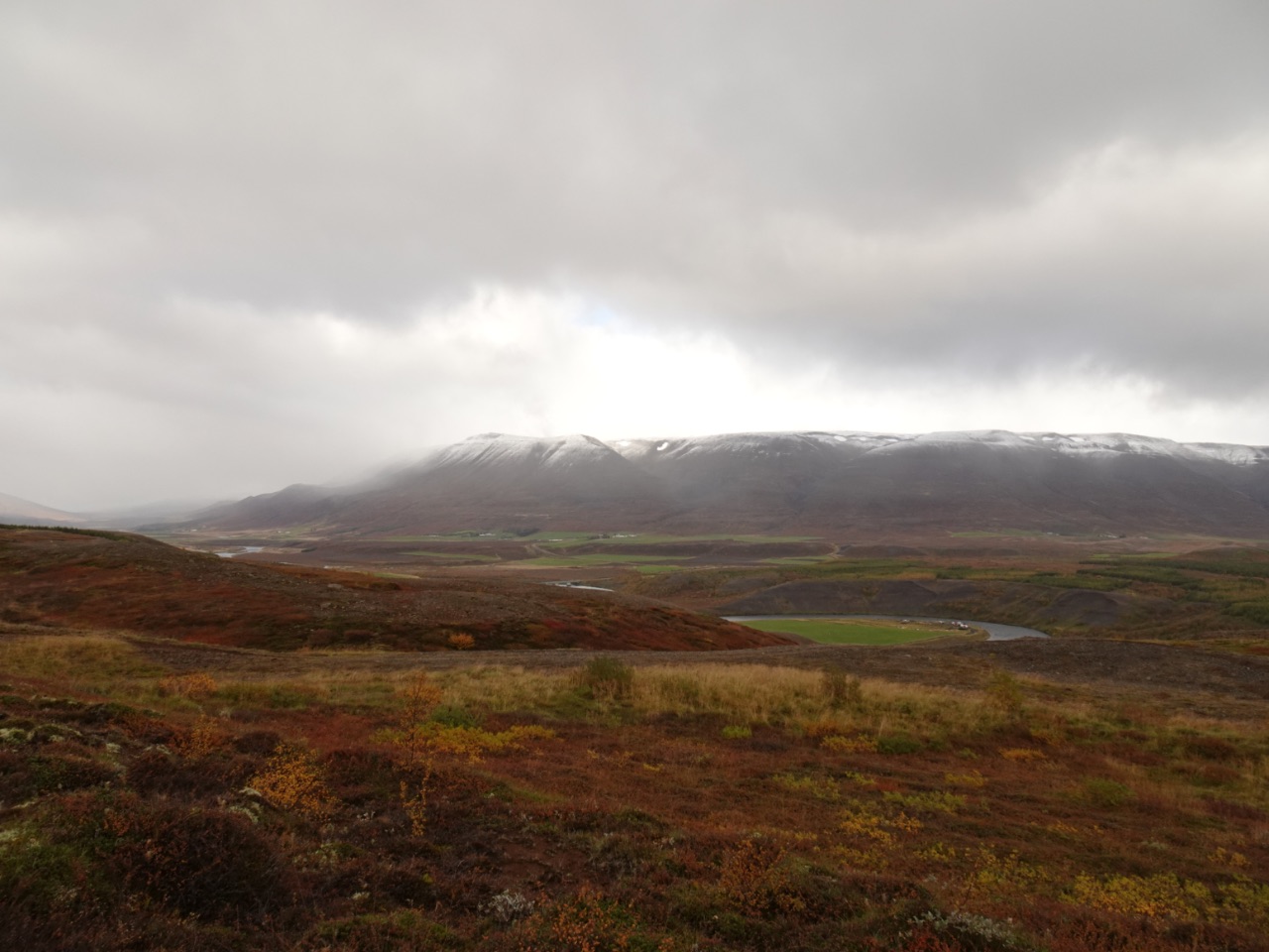 We reden weer terug naar Akureyri waar we die ochtend al doorreden. We overnachtten er namelijk twee nachten in Acco Guesthouse. Die toltunnel sloegen we opnieuw over, maar die andere route, die we 's ochtends namen, kozen we ook niet. Er is namelijk een andere mogelijkheid: in plaats van door en langs de berg te rijden, reden wij eróver, via weg 832. Deze route gaat over de Vaðlaheiði hoogvlakte... en was toch 'iets' avontuurlijker dan we gedacht hadden... : Het is geen F-weg maar er mag enkel maar met 4x4's opgereden worden. De 19km lange gravelweg was in barslechte staat. Ze heeft erg steile stukken en 14 haarspeldbochten (zonder vangrails, om goed naar beneden te kunnen kijken...). Het waaide flink bovenop de hoogvlakte en het ging er ook (horizontaal door de wind) sneeuwen. Daarnaast is een brugje kapot waardoor ze de weg afgeleid hebben... door een riviertje... geen giga-rivier, eerder een flinke beek, maar ze had best hoge oevers en er stond flink wat water in... Ine heeft er haar eerste echte, weliswaar kleine, rivierdoorsteek gemaakt... onverwacht... vooral toch spannend! En Johan maakte geen foto toen Ine die doorsteek maakte! We waren beiden een beetje beduusd, denken we :-D We vonden dit filmpje van de route: in tegenovergestelde route, in de zomer en met véél minder water in het riviertje.