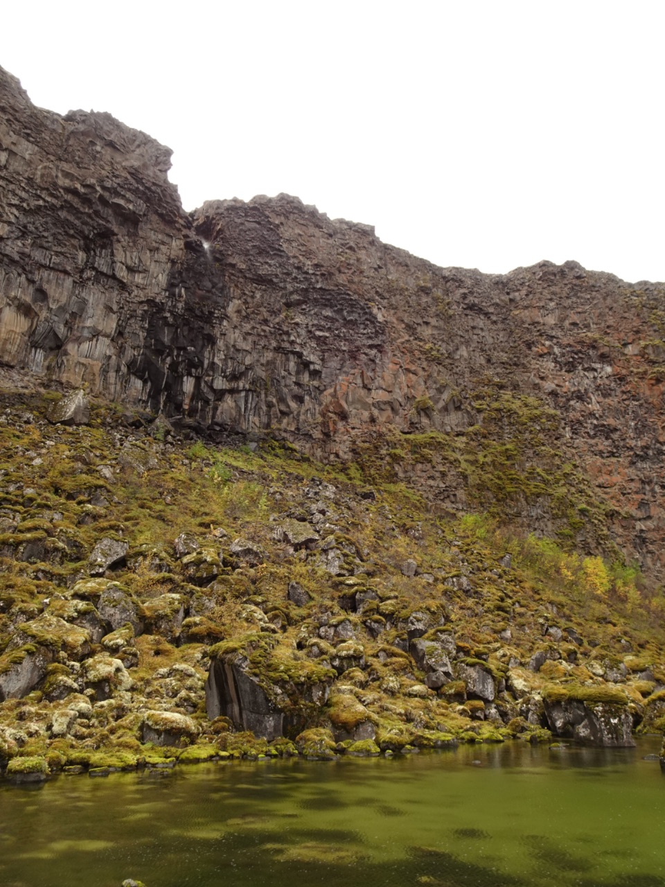 In 2007 waren we ook in Ásbyrgi. We hadden er gewandeld, maar niet echt via een pad of in een bijzonder gedeelte van de canyon. We wilden er daarom nu toch een mooie wandeling maken. Op een kaart van de canyon in het infocenter vonden we de Botnstjörn-route. Helemaal achteraan in de canyon startte de wandeling. De route was maar iets langer dan een kilometer maar bracht ons langs één van de hoge kliffen en het groenige meertje Botnsjörn met een watervalletje dat weer wat wegwaaide. Op een bepaald punt hadden we op de route een mooi uitzicht op verschillende kliffen/rotsen... jawel, dat was een kort maar krachtige wandeling!