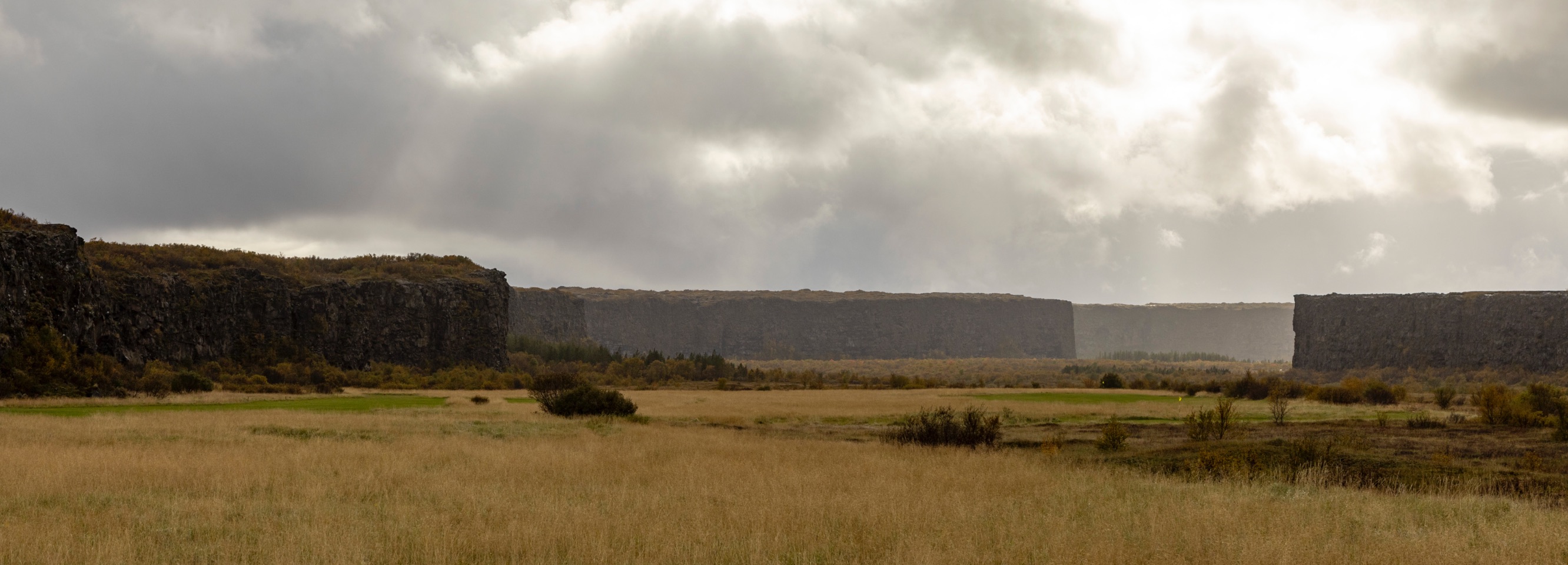 In ieder geval, de goed beboste hoefijzervormige canyon Ásbyrgi is zo’n 4 km lang, 1 km breed en heeft 100 m hoge rotswanden.