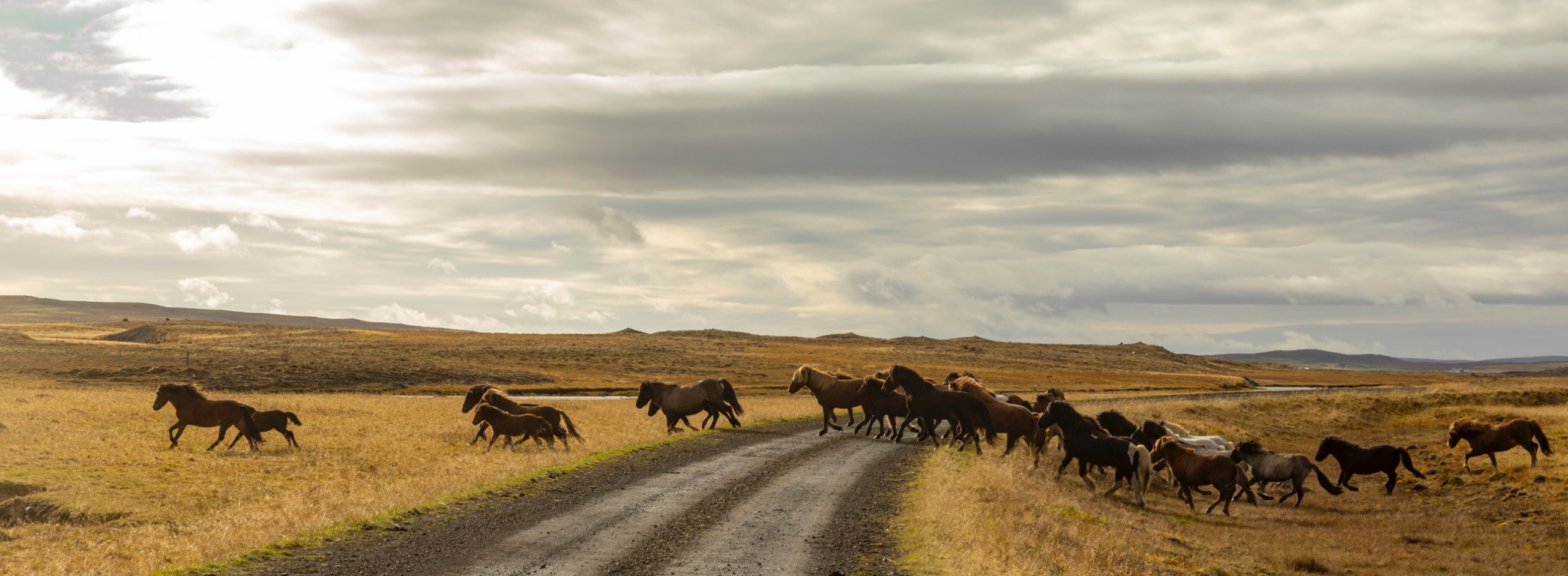Vervolgens na een tijdje weer op de Ringweg (= °1) te rijden, reden we de ° 714 op. We reden die, wat wel zo gepland was, niet helemaal 'rond', maar reden over de °704 terug even de Ringweg op. Bij de °703 sloegen we weer af. Eigenlijk onverwacht, maar erg bijzonder, kwamen we een grote kudde "wilde" paarden tegen. Op IJsland staan de meeste IJslanders ondertussen gewoon in weien. Ze zijn mensen gewoon en komen, als je bij de wei gaat staan, naar je toe uit nieuwsgierigheid. Déze paarden stonden niet in een wei maar liepen vrij rond. In tegenstelling tot hun soortgenoten waren ze héél schuw en onrustig. Waarschijnlijk komen ze ook niet al te vaak een auto tegen want iedereen rijdt, omdat het sneller gaat, over de Ringweg. Waarschijnlijk rijdt enkel de boer en zijn bezoek over de °703... en wij dan...