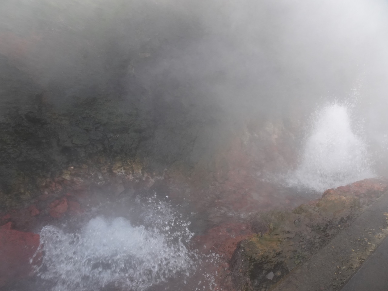 Weg van de Ringweg stopten we, voor de zoveelste keer, bij heetwaterbron Deildartunguhver. Deze blijft indrukwekkend! Deildartunguhver is qua volume de grootste heetwaterbron van Europa. Hij produceert 180 liter water per seconde met een temperatuur van bijna 100°C. Voordat de betonnen constructie voor het opvangen van het hete water gemaakt was, stroomde het water vrijelijk weg. In die tijd was dit de grootste "kokende rivier" ter wereld. Nu wordt de warmte gebruikt voor het verwarmen van de huizen in de steden in de buurt. Anders dan bij de eerdere bezoeken konden we nu ook naar de rivier die er in de buurt stroomt. In die rivier komen op verschillende plaatsen ook warme stroompjes omhoog.