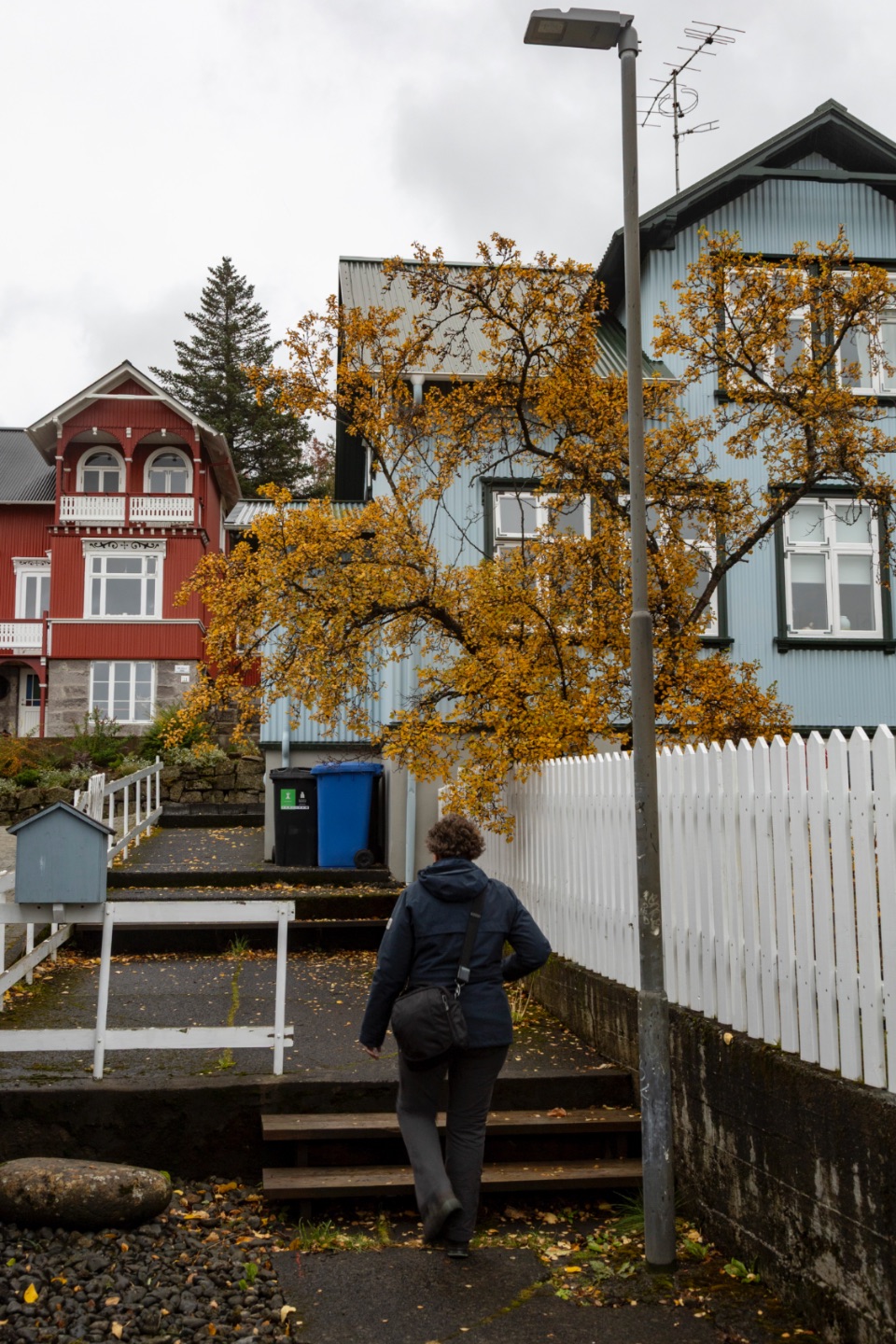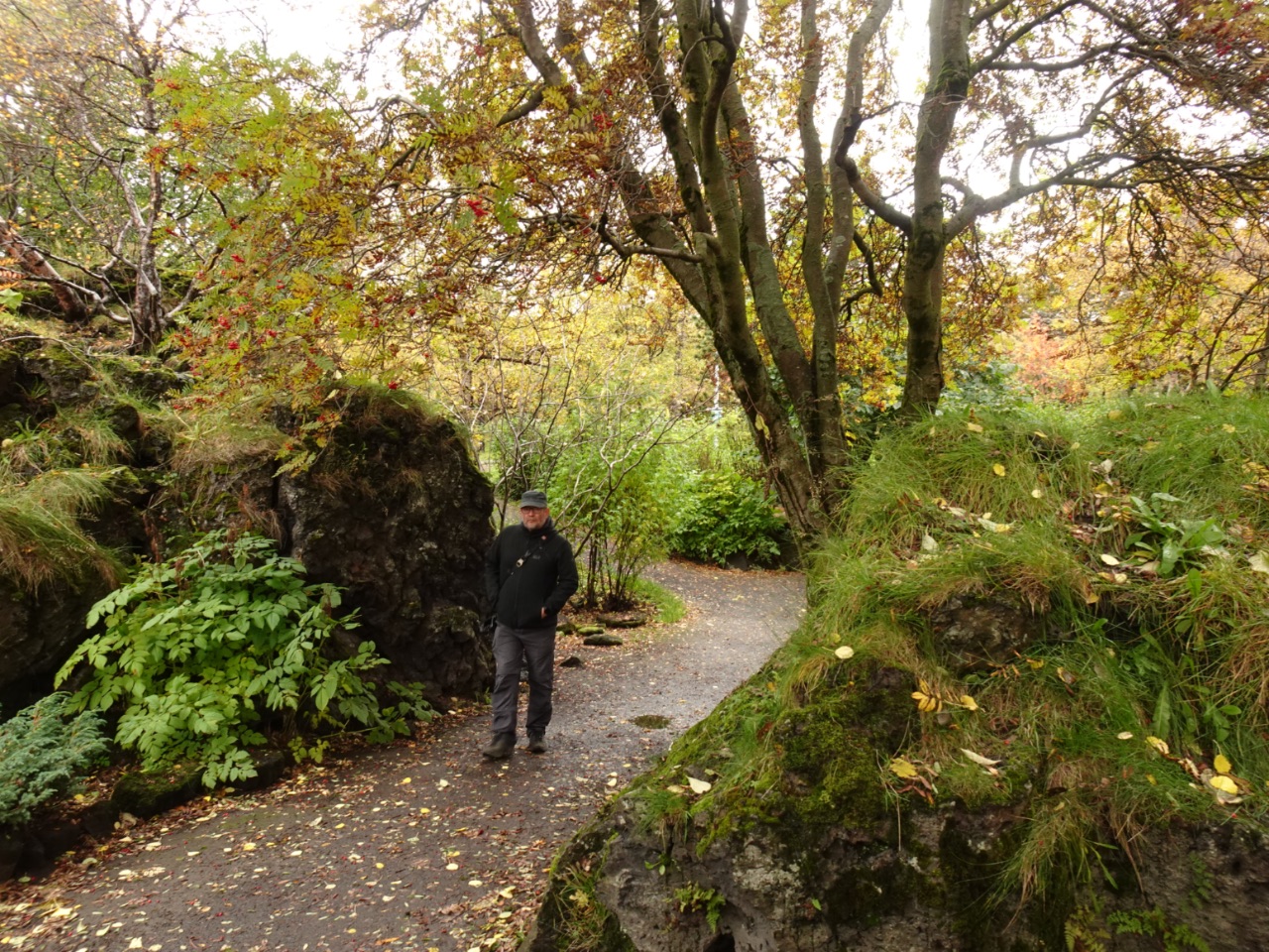 Onze wandeling van een zestal kilometer doorheen Hafnarfjörður startte in het park Hellisgerði. Net zoals over heel IJsland waren de bomen in dit gebied verdwenen door de dikke lagen vulkaanas die er overal gelegen heeft en ligt. In 1924 werden de eerste bomen tussen de grote lavabrokken (elfenwoningen) gepland in dit parkje. Ondertussen is het park een mooie, bijna idylische groene plek geworden. Doorheen de straten van Hafnarfjörður wandelden we langs verschillende oude traditionele huizen. Regelmatig lag er ook een gigantische basalten rotsblok in iemands tuin of tot tegen de woning... elfenrotsen die, om die reden, niet verwoest waren... we wandelden een heel stuk over het pad langs de baai Faxaflói. Van daar ging het langs de Hafnarfjarðarkirkja en ging het, tussen vele prachtige oude huizen, omhoog. We móesten natuurlijk naar de klif Hamarinn: hier staat immers het koninklijk paleis van de elfenkoning! Die koninklijke elfenfamilie heeft er een mooi uitzicht over de regio, zeg!