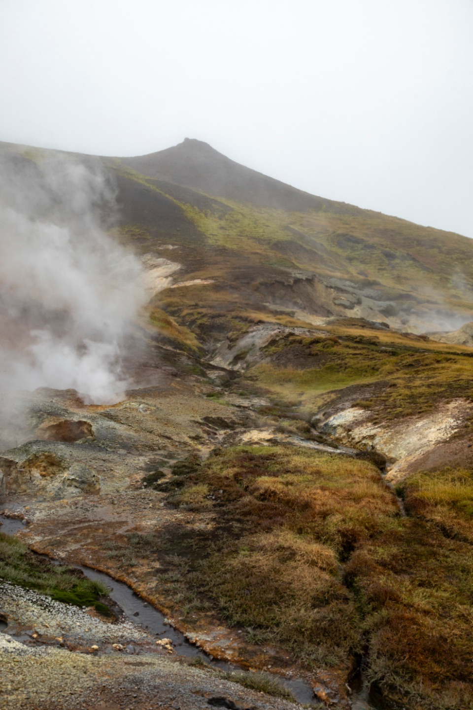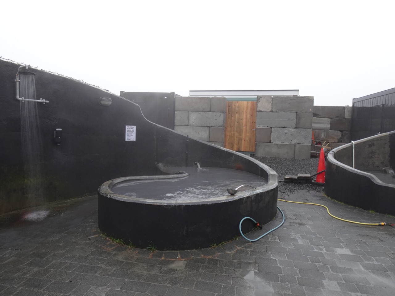 De stoom kwam er al langer dan na die boringen van in de jaren '80 uit de grond. Waarschijnlijk was de boer die er begin 20e eeuw woonde de eerste die een badhuis maakte door alleen deze stoom en grondwater te gebruiken. Die oude installatie is er nog steeds en het badje is nog steeds in gebruik. We hebben overwogen om in de badjes te gaan, maar het regende echt veel te hard.