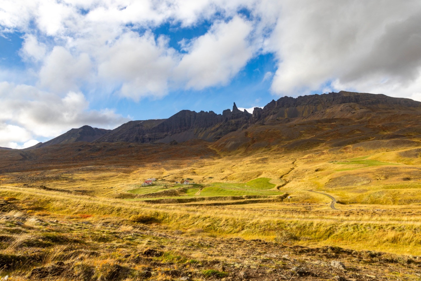 Na ons ontbijt vertrokken we vanuit Mývatn. Voorlopig viel het weer nog heel goed mee. Het was zelfs vrij zonnig.