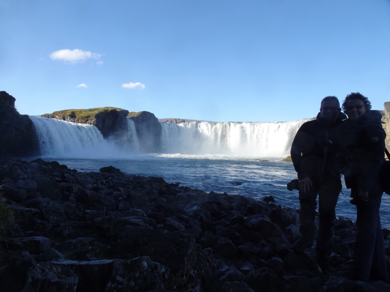 Na een drie kwartiertjes rijden, stopten we een eerste keer. Bij waterval Goðafoss gingen we ditmaal de oostoever nogmaals bekijken... die oostkant is toch wel echt de mooiste kant... en die Goðafoss blijft toch echt érg mooi!