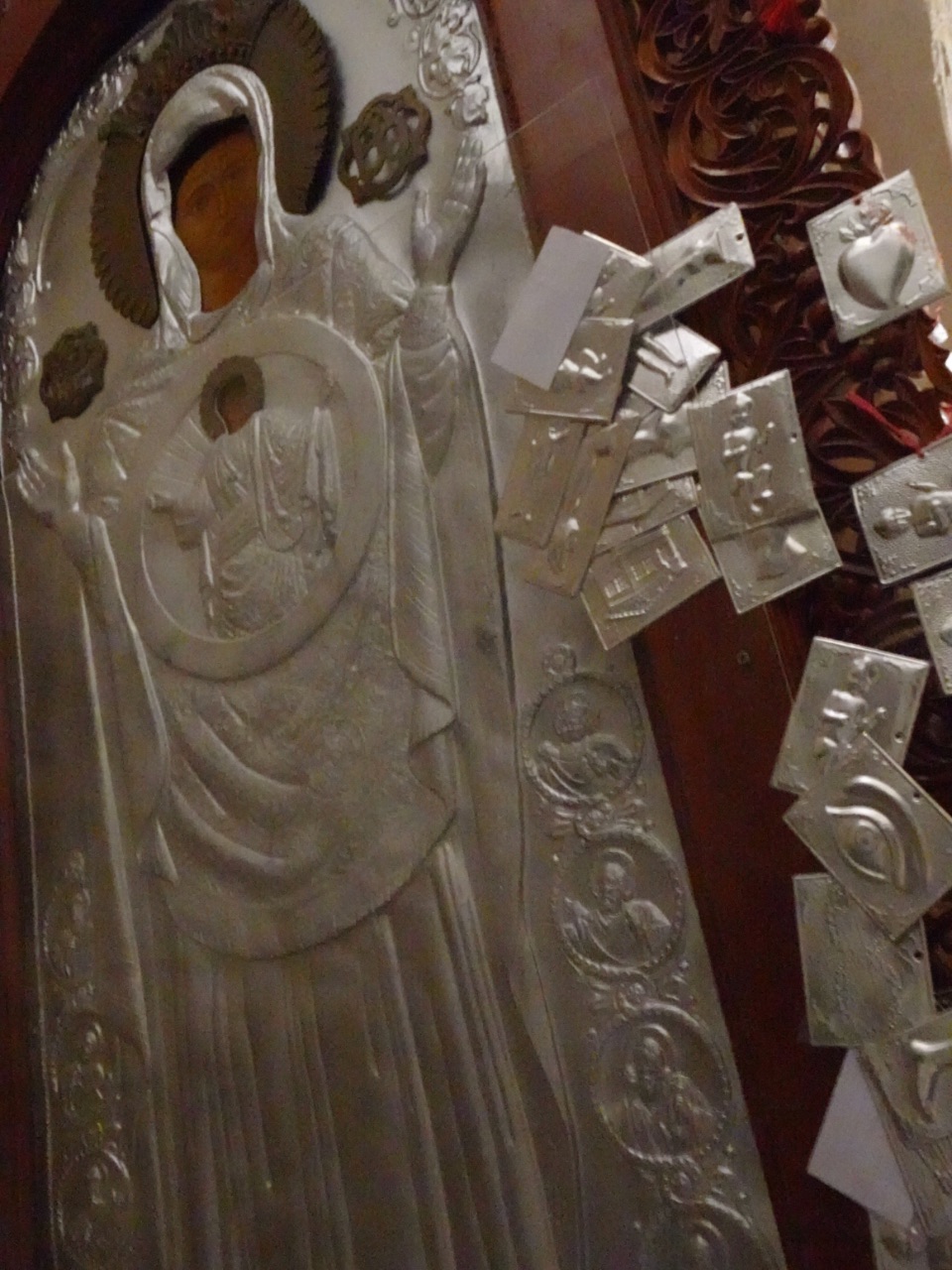 De 16e-eeuwse kerk van het Agia Napa klooster werd door de Venetianen gebouwd. Het is gedeeltelijk ondergronds en uitgehouwen in de rots. Die rots is uitgebreid met een buitengevel en werd af en toe gebruikt door monniken of nonnen. Ondertussen is deze kerk best mooi gerestaureerd. Dankzij de heilige Maagd Maria komen nog steeds stellen die onvruchtbaar zijn en vrouwen die problemen hebben tijdens de zwangerschap naar het klooster om te bidden om hulp en om te vragen om de wonderbaarlijke gordel van de Heilige van Agia Napa te dragen... géén idee wat dat is. We zijn niet in de winkel van het klooster geweest... Aan een ijzeren beeltenis van Maria hingen erg veel van die ex voto-plaatjes en -beeldjes waarover we ook al eerder in dit blogbericht schreven. Het waren niet alleen plaatjes/wassen beeldjes met een baby, maar ook ogen, harten, voeten enz. Verder was de overkoepelde, achthoekige marmeren fontein op de binnenplaats van het klooster mooi. In het marmer zijn mooie reliëfs in aangebracht.