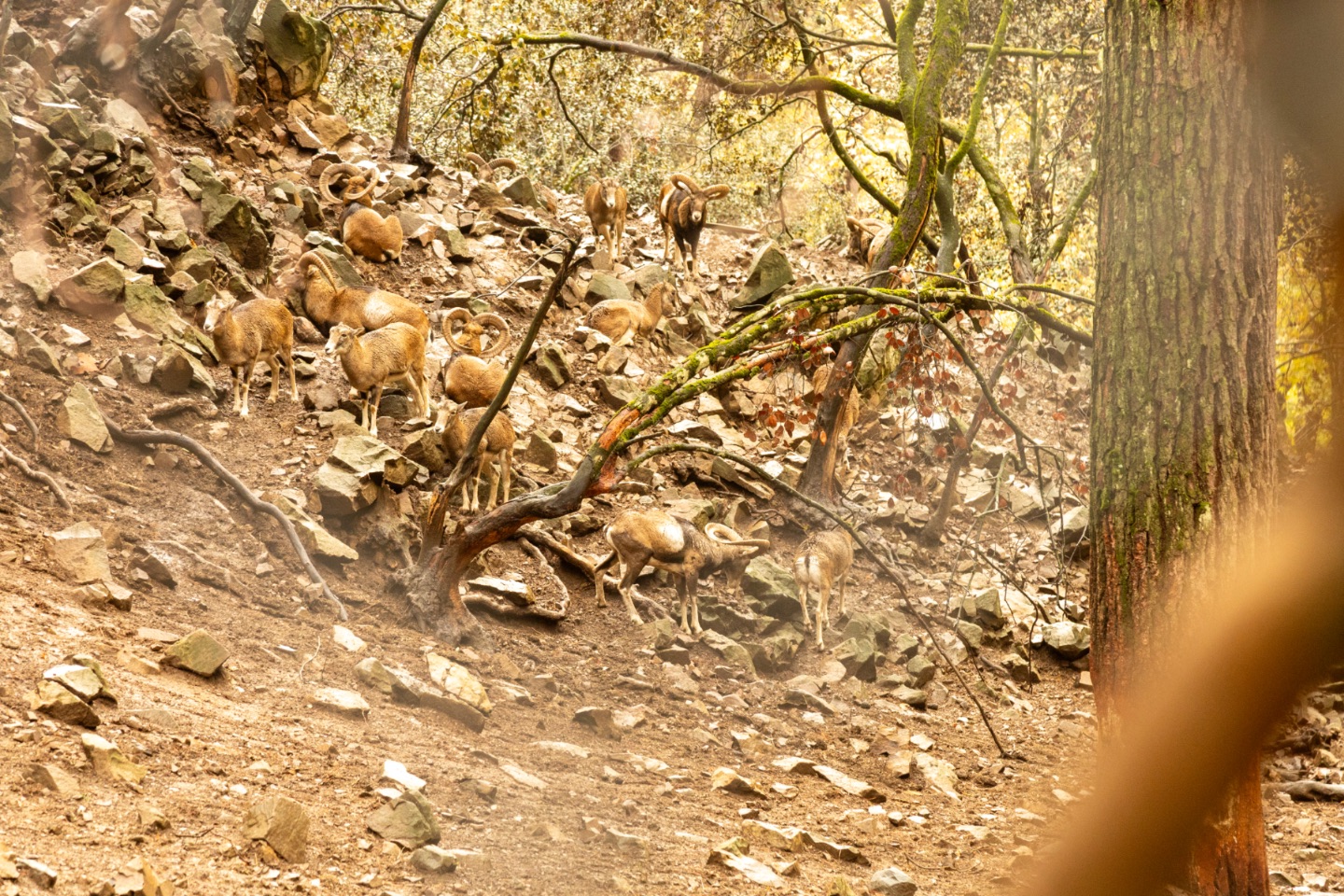 We wandelden er naar een "wei" tegen een rotsheuvel waar tientallen moeflons opgesloten zitten. Dit gebied is ook de natuurlijke omgeving van de moeflons, maar we wilden toch even zeker zijn dat we ze, als nationaal symbool van Cyprus, gezien zouden hebben. De dieren zijn immers, in het wild, erg schuw en moeilijk te zien... misschien wel te ruiken... bah, het waren stinkerds, zeg!