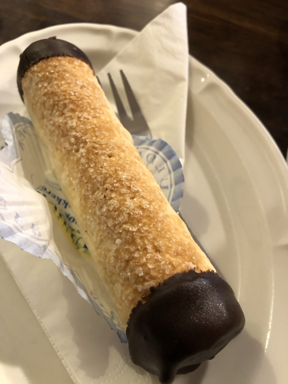 Het duurde nog anderhalf uur vooraleer we weer stopten. Omdat we er langs reden, niet omdat er iets te zien zou zijn... en dat was er ook helemaal niet, stopten we in Hoogeveen, in het zuiden van de provincie Drenthe... maar het was net te vroeg om al naar ons appartement/huisje te rijden... én een vieruurtje zou er wel in gaan bij Ine... We gingen bij Konditorei D'inschieter - Bakkerij Mulder binnen en bestelden koffie en ieders een "Hoogeveens rolletje": een lekker gebakje met slagroom.