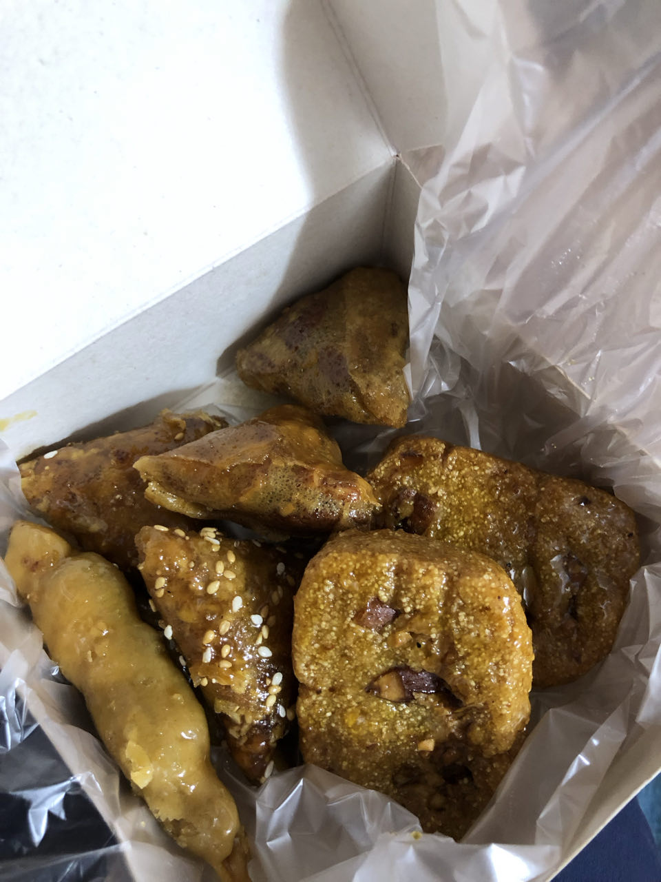 Tunesische bourek (of brik). We leerden later in de week dat dit een typisch ramadangerecht is... We aten het dus ie-de-re avond. Het is een gefrituurd, flinterdun malsouka-deegpakketje, vaak driehoekig, gevuld met ei, tonijn, peterselie, ui en harissa is. Het gerecht wordt meestal gefrituurd tot het goudbruin en knapperig is, waarbij het eiwit gestold is en de dooier nog iets vloeibaar... en gelukkig voor Ine zit er echt niet veel tonijn in... en het was, iedere dag, erg lekker!
