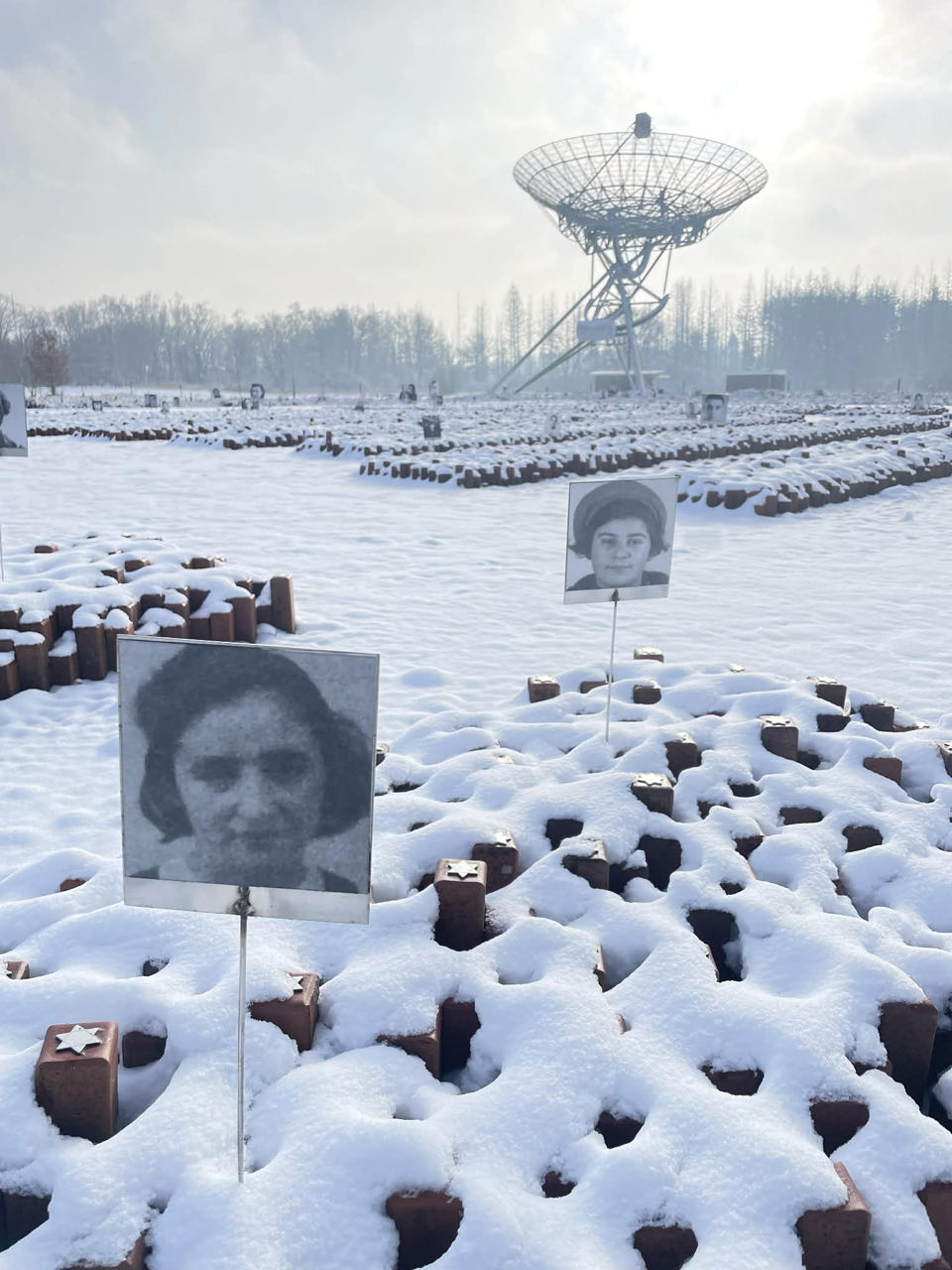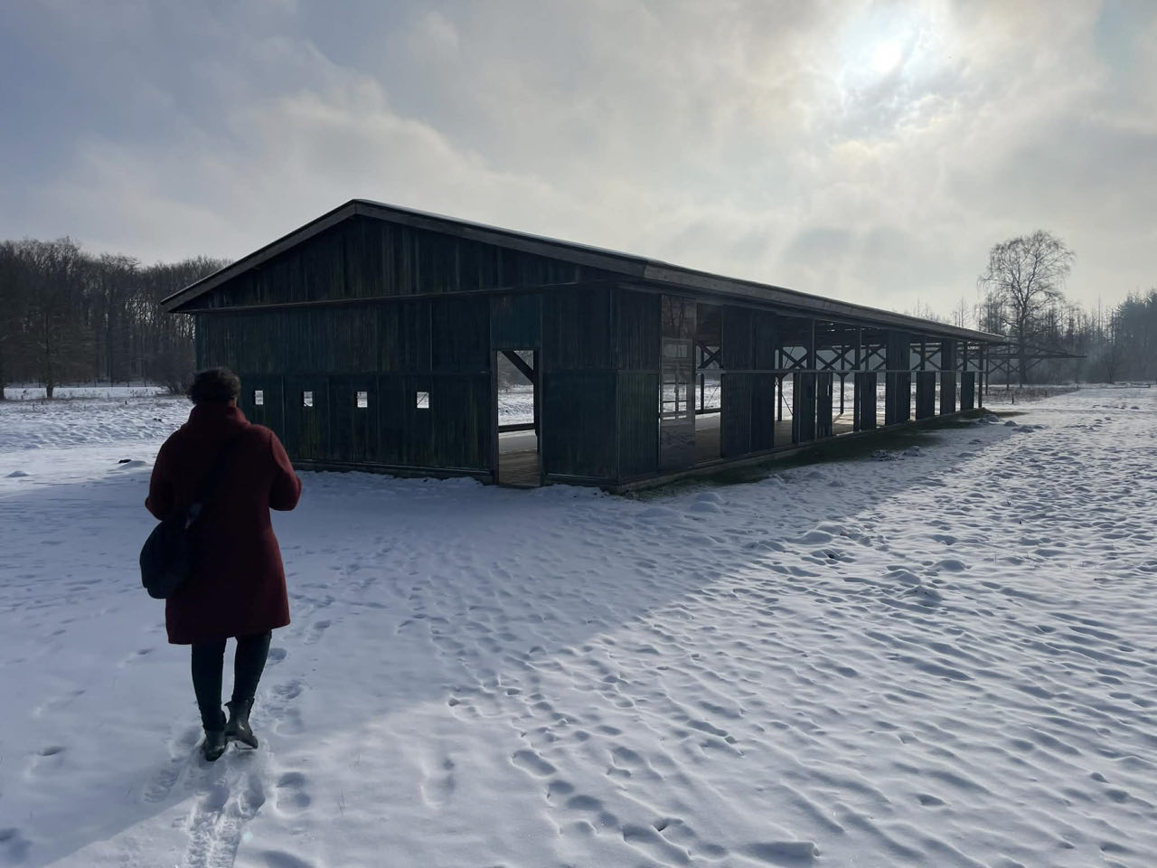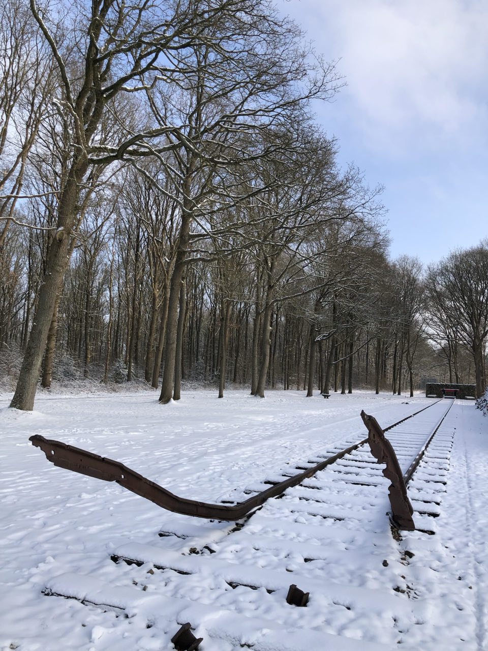 We wandelden vervolgens rond in het spierwit besneeuwde open landschap. Er staat eigenlijk niks meer recht van het kamp. Er is nog één woning, nog vanuit de beginperiode, langer in gebruik geweest. Een Moluks gezin waarvan de vader één of andere functie had in 'Woonoord Schattenberg', had het vruchtgebruik gekregen tot aan hun dood. De dochter des huizes heeft er nog tot aan haar dood geleefd.Er staan twee treinwagons van waaruit continu alle namen van de 107.000 mensen die gedeporteerd werden klinken, de buitenkant van barak 56 staat er nog, er zijn nog plaatsen aangeduid, gedenktekens geplaatst, informatieborden, waar het strafkamp lag werden de omheiningen die errond stonden nagebouwd ed. Er zijn twee erg bekende en symbolische plekken in het voormalige kamp: