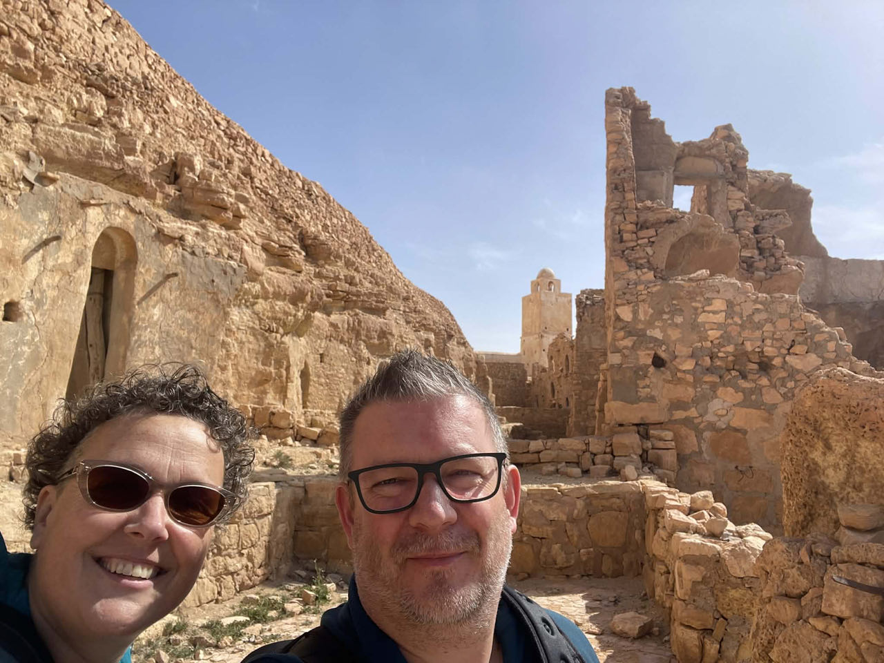 In de winter is er geen tijdsverschil tussen België en Tunesië, dus dat was fijn gemakkelijk. Het maakte ook dat we dus al vroeg op Djerba waren. Aan de uitgang van de luchthaven stond iemand ons netjes op te wachten met een bordje "