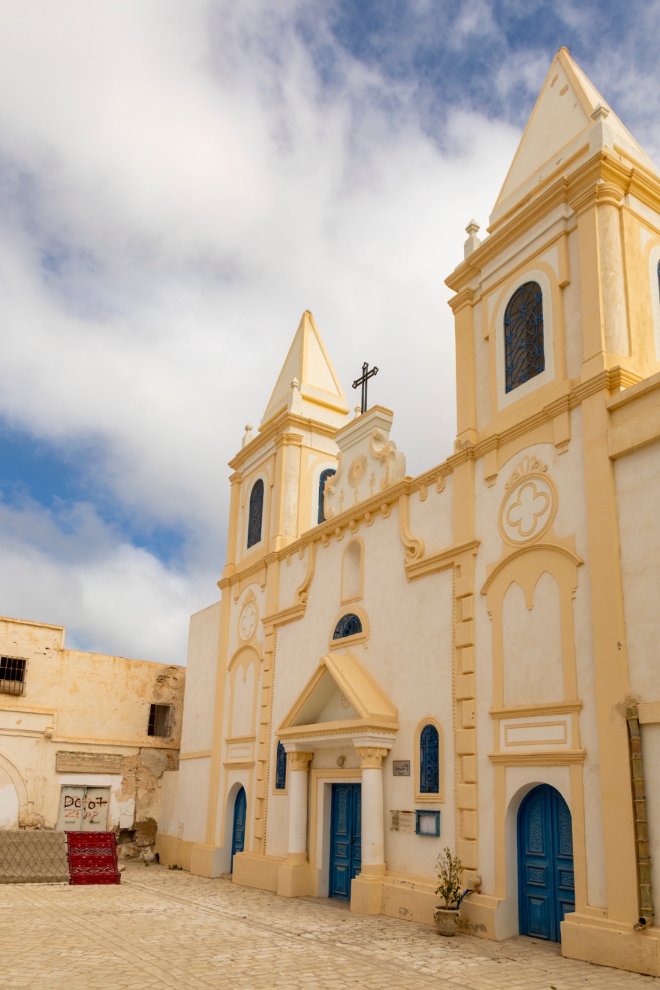 Blijkbaar is het een betoverende bestemming... het laat in ieder geval zien dat er verschillende culturen (hebben) kunnen samenleven in Tunesië. Op zondagochtend zouden er missen in het Engels, Duits, Frans en Italiaans zijn... en moesten we daar al in geïnteresseerd zijn: tegen dan hadden we het eiland Djerba al verlaten.