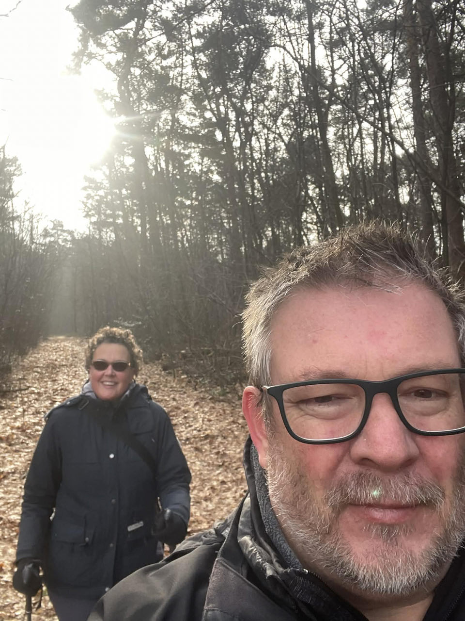 We zijn in ieder geval getraind voor ons aanstaande weekendje weg in de Nederlandse provincie Drenthe en Johan is goed bezig aan zijn trainingsprogramma richting zijn langeafstandswandelingen in het voorjaar... al moet hij véél trager wandelen als Ine erbij is (+/- 5,5 i.p.v. 6,8/u).