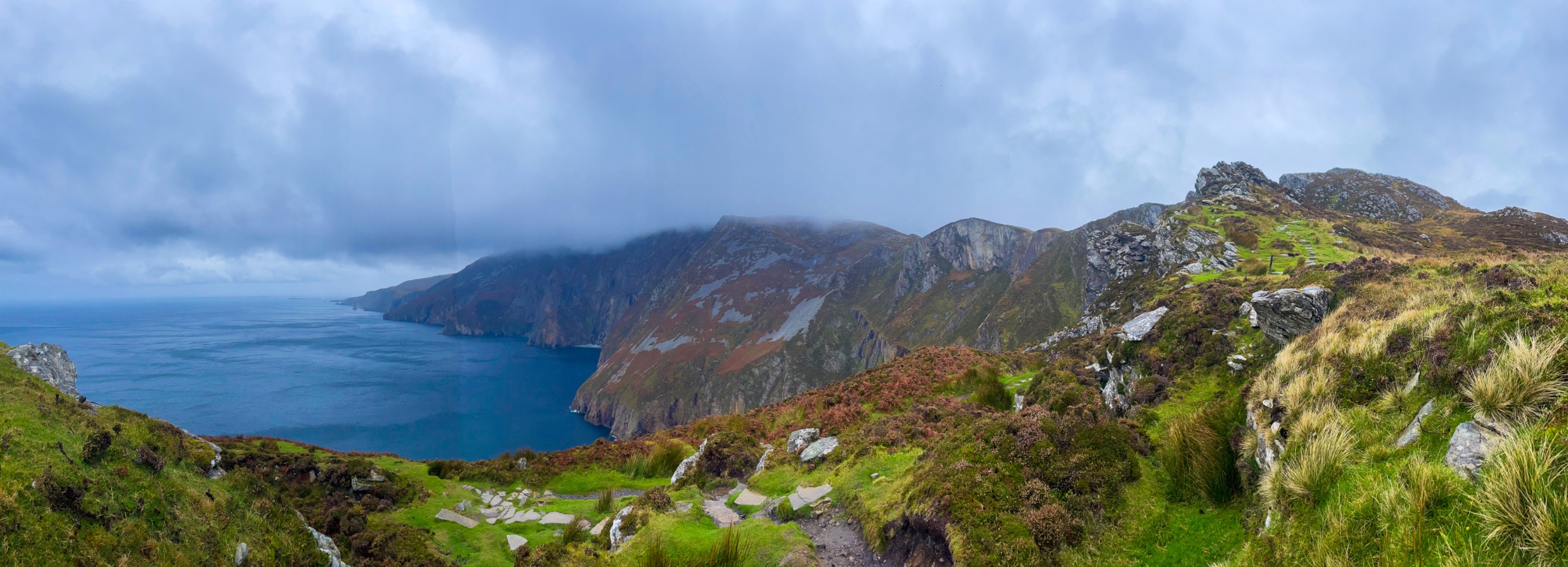 Slieve League". Van de parkeerplaats tot aan de kliffen was het zo'n 2,5 km wandelen tot aan de op één na hoogste kliffen van het