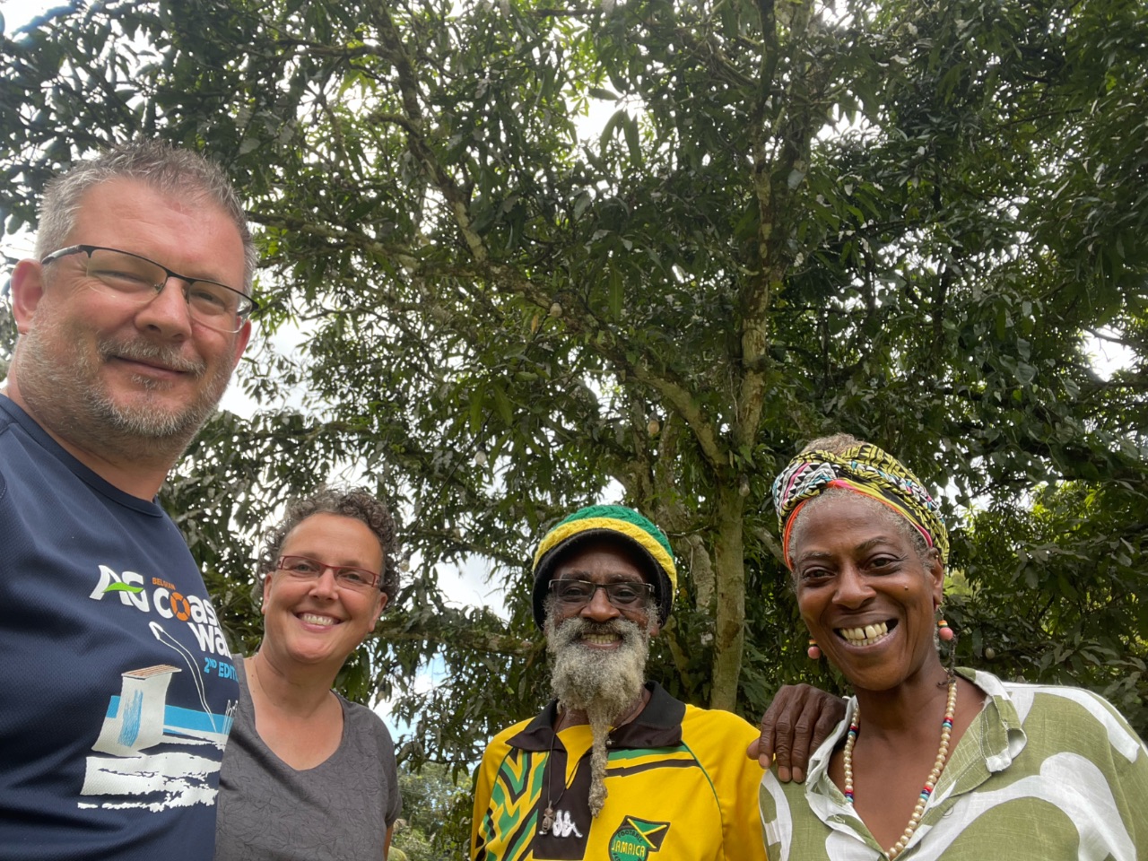 Kingston Reggae Garden de parkeerplaats opreden. Het was iets over 13 uur en het café/restaurant was net open. Davy kwam ons tegemoet en bleef nog een tijdje bij ons, Tracey en Austin zitten. Tegen 15u namen we afscheid, beloofden we niet weer elf jaar te wachten vooraleer hen nog eens te bezoeken en reden Austin en Tracey terug naar huis. Wij gingen naar ons appartement om... te slapen...