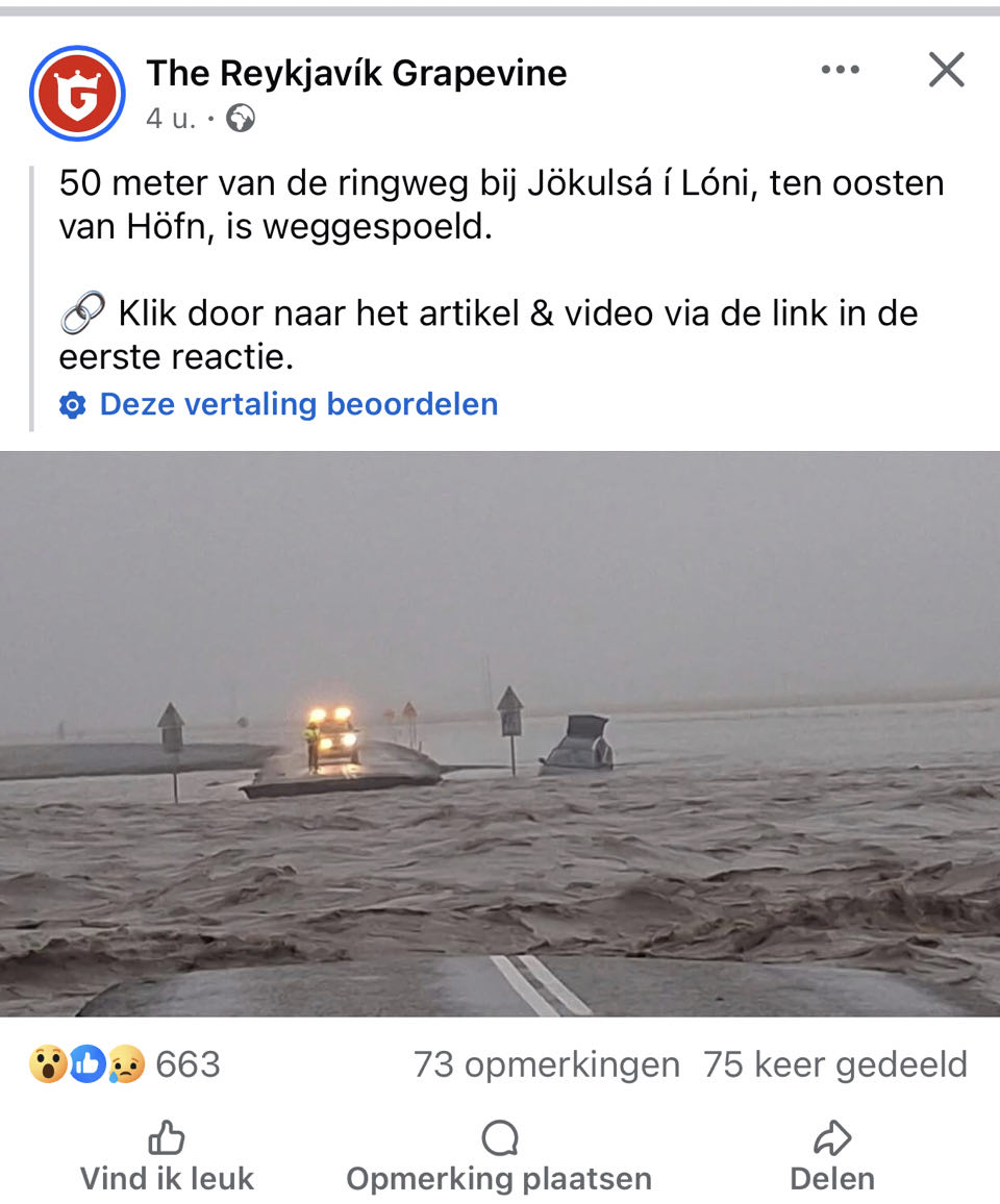 Door regelmatig op Icelandic Meteorological Office het IJslandse weerbericht te checken, hadden we al enkele dagen voordien gezien dat het erg slecht weer zou zijn vanaf donderdagavond 25 op vrijdag 26 september '25. Er werd gewaarschuwd voor harde (ruk-)winden en felle regen voor het hele land, uitgezonderd de Westfjorden. Ook vanuit het autoverhuurbedrijf kregen we mails met oproepen om voorzichtig te zijn.